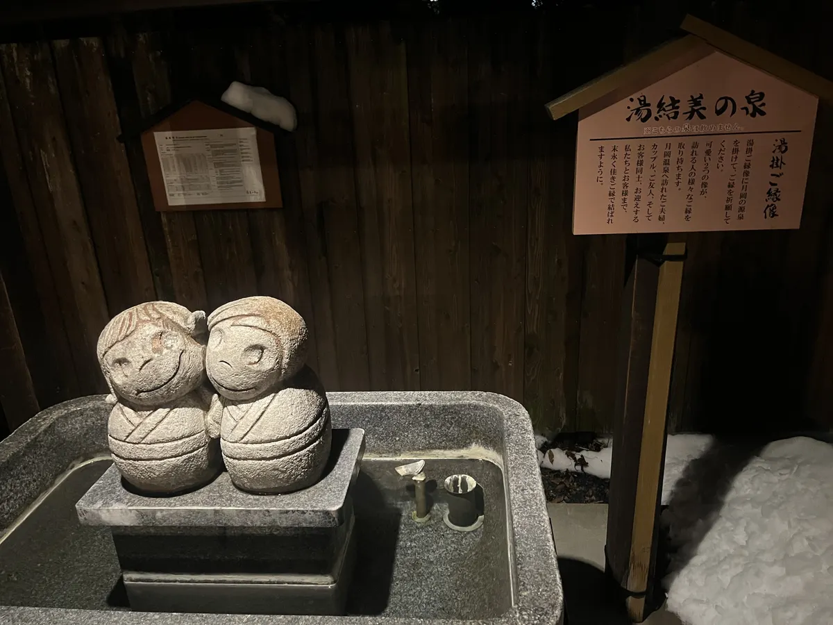 源泉を下の泉の像にかけると縁結びにつながるとのこと。
