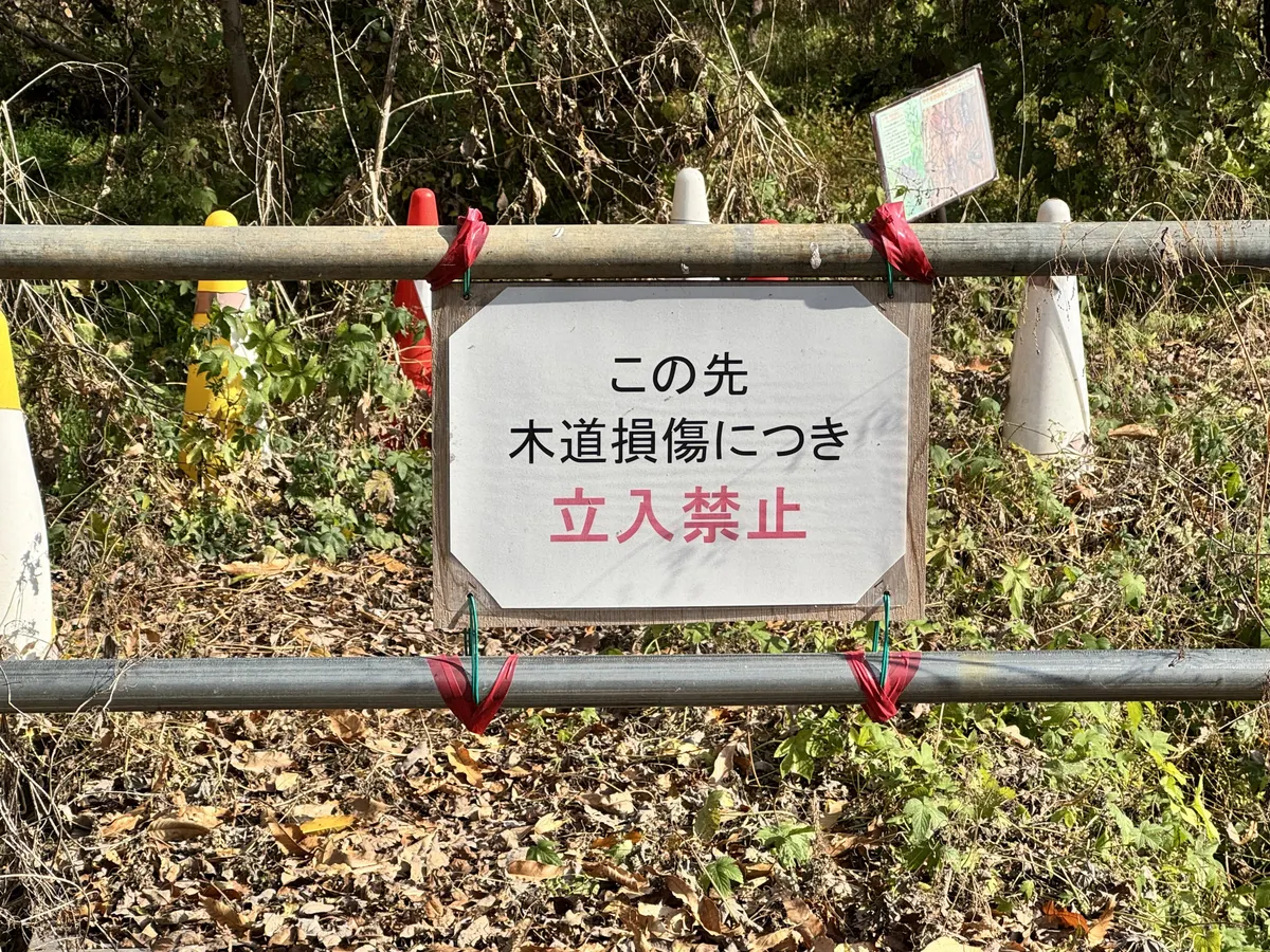 実はこの木道コースは2つあって、ここで合流し周回できるのですが、片方の木道も同様に全区間通行止めでした。普段はこの先にある残り3分の1くらいを行けるのですが、この合流地点から引き返すしか無かった😔