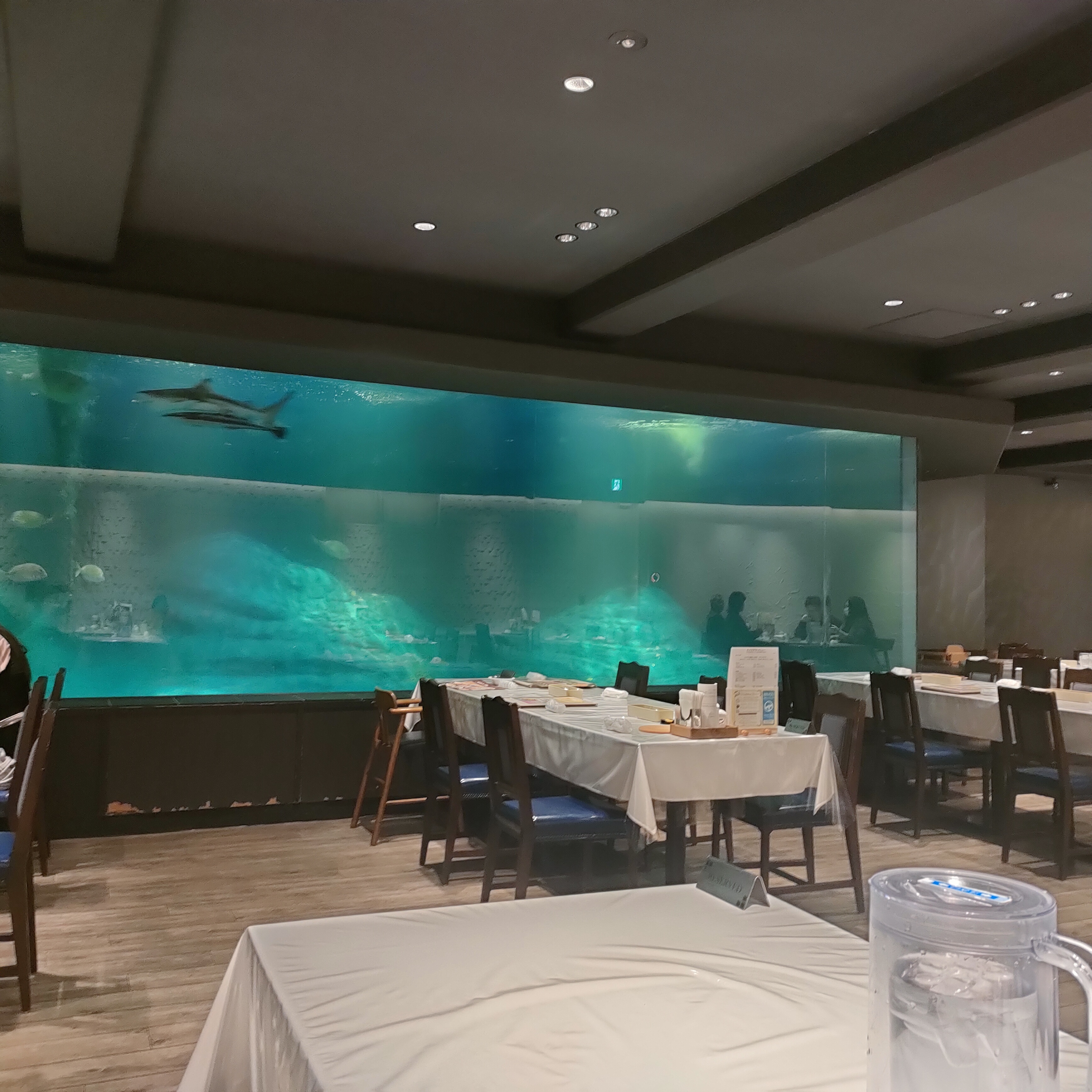 お昼、シーフードレストランメヒコのシャーク館、サメを眺めながらご飯
