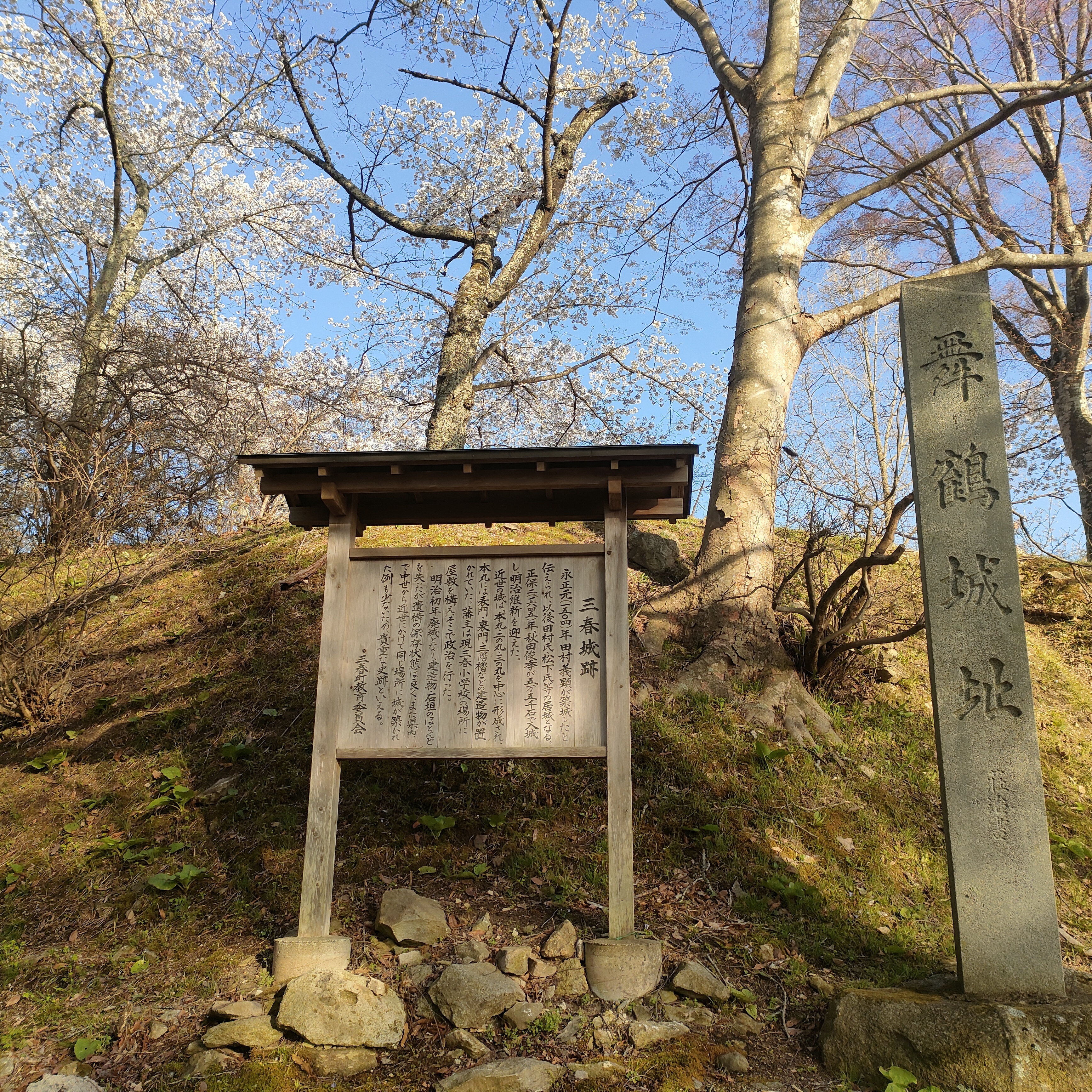 途中三春城に立ち寄り。桜、咲いてました。強風で目の前2メートルくらいに巨大な枝が落ちてきたのでそのあたりからは早めに退散(笑)