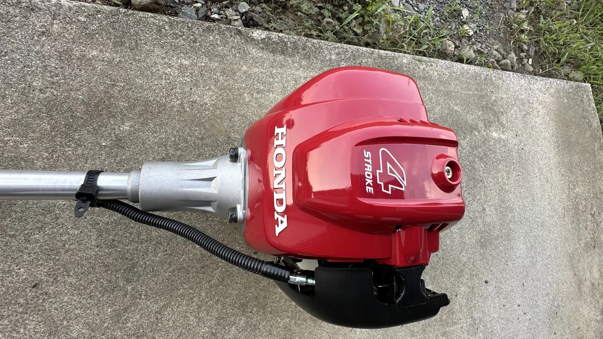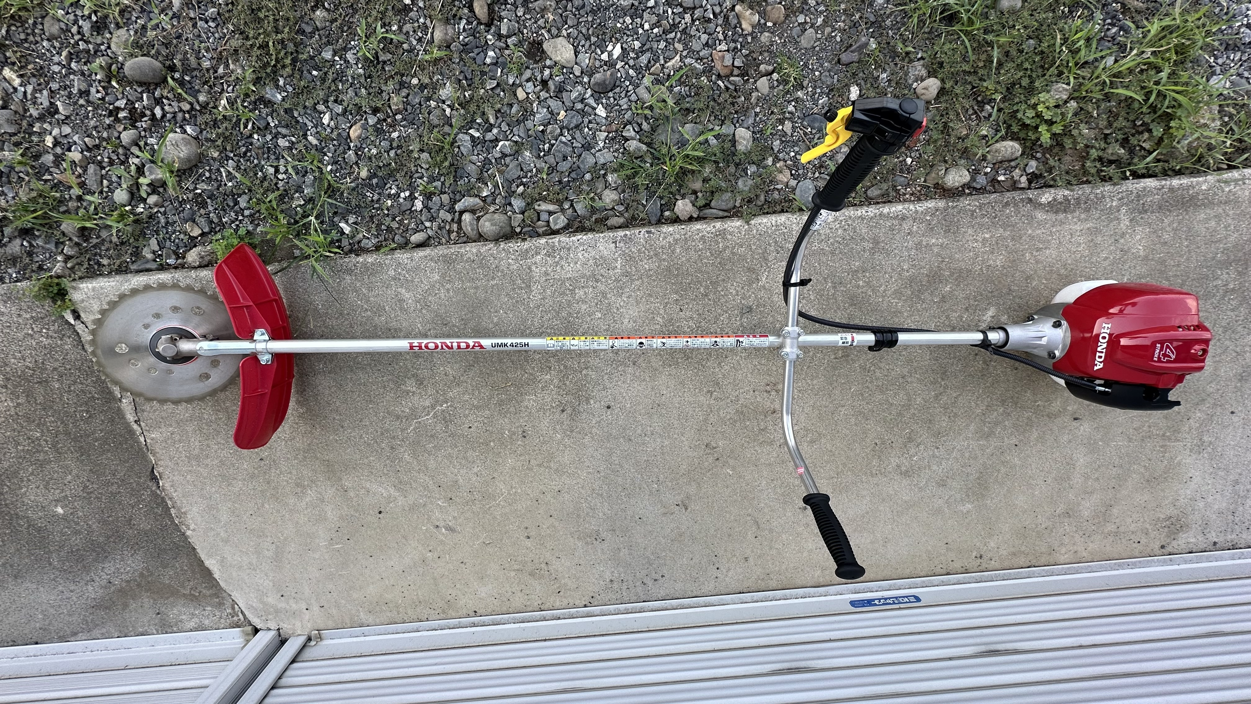 通常は草刈機のエンジンは2サイクルが多いのですが排気ガスにオイルが出て来るのと混合ガソリンの手間を考えて4サイクルエンジンの物を購入致しました。