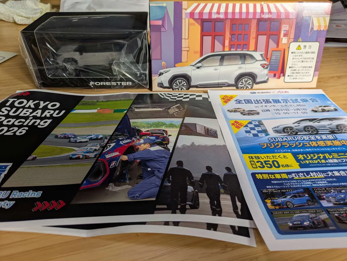 体験して車から降りてごちゃごちゃしていて新型フォレスターのミニカー貰い損ないました!