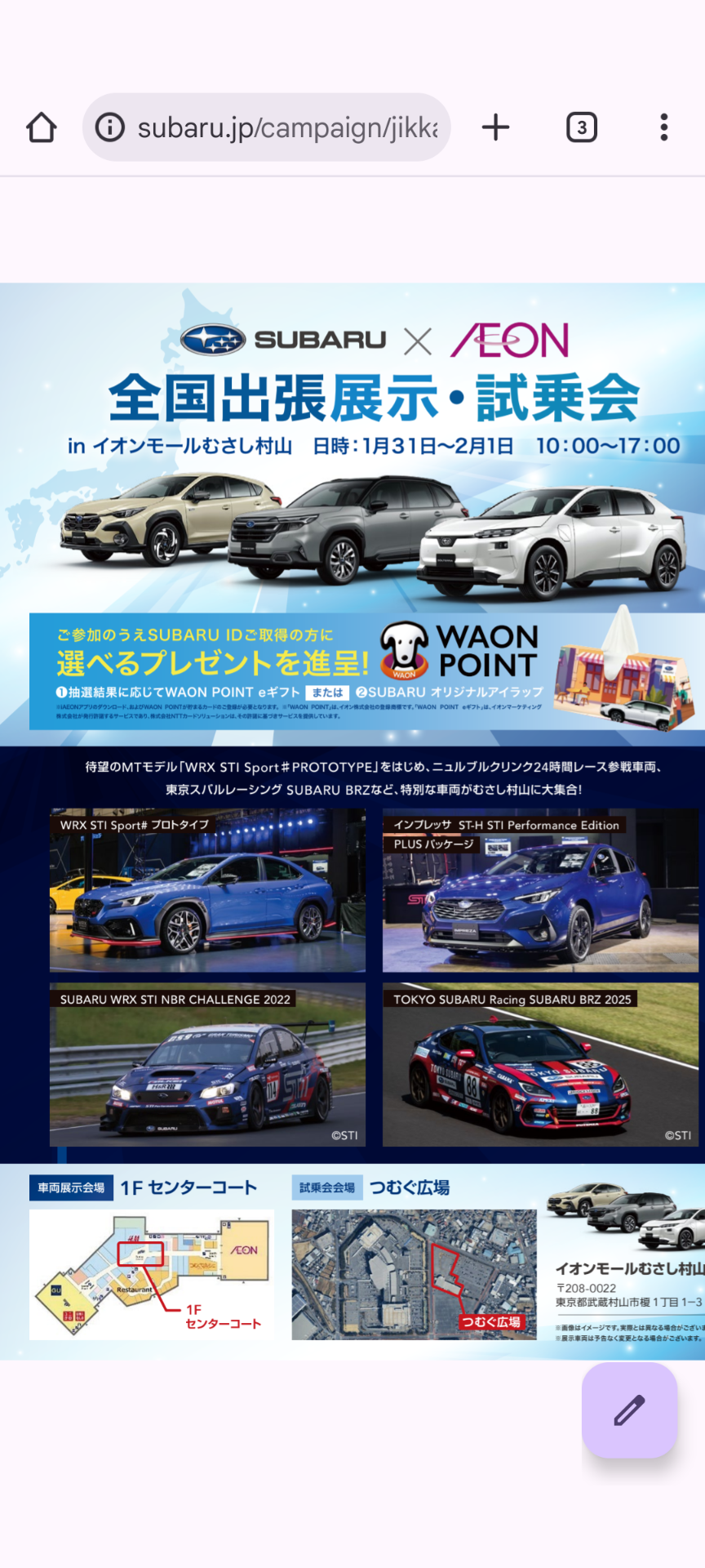 トップ > その他 > SUBARU✖️AEON in イオンモールむさし村山 ニレドン@GU7 2026/02/01 14:11 SUBARU✖️AEON in イオンモールむさし村山 自宅から車で20分で行けるので、むさし村山まで行ってきました! 館内にはソルテラ、フォレスター、クロストレックが展示されてました! 場外ではWRX STI NBR CHALLENGE、TOKYO SUBARU Racing BRZ、インプレッサ STI パフォーマンスが展示されてました! ガラポンでアイラップ、プリクラッシュ体験でフォレスターのミニカーをいただきました😊 スバル×イオン 全国出張展示試乗会 東京スバルレーシング いいね 共有する 共有する X facebook LINE リンクをコピー コメントする 1 件の返信 (新着順) ミュートしたユーザーの投稿です。 投稿を表示 がー 2026/02/01 14:54 やっぱり? 体験して車から降りてごちゃごちゃしていて新型フォレスターのミニカー貰い損ないました! しまったぁ(~_~;) いいね 返信する ミュートしたユーザーの投稿です。 投稿を表示 ニレドン@GU7 2026/02/01 15:30 がー あちゃー! ですねぇ~💦 体験の後のごちゃごちゃで、あるあるですね! 小生もごちゃごちゃに紛れそうでしたが、気付いてミニカーをゲット出来ました!👍 いいね 返信する ミュートしたユーザーの投稿です。 投稿を表示 がー 2026/02/01 15:34 ニレドン@GU7 アピールして違ってたらなんかカッコ悪いなとか思いつつ、ニュル行く車色々細かいところの設計意図を読み取るのに夢中にでした😅 いいね 返信する ミュートしたユーザーの投稿です。 投稿を表示 ニレドン@GU7 2026/02/01 17:27 がー がーさん! 流石ですねぇ~👍 ニュル行く車の細かい所〜 そこに夢中になってミニカーゲットを忘れるなんて!👍 ニュル行く車は、やっぱり凄いですよね😁 いいね 返信する