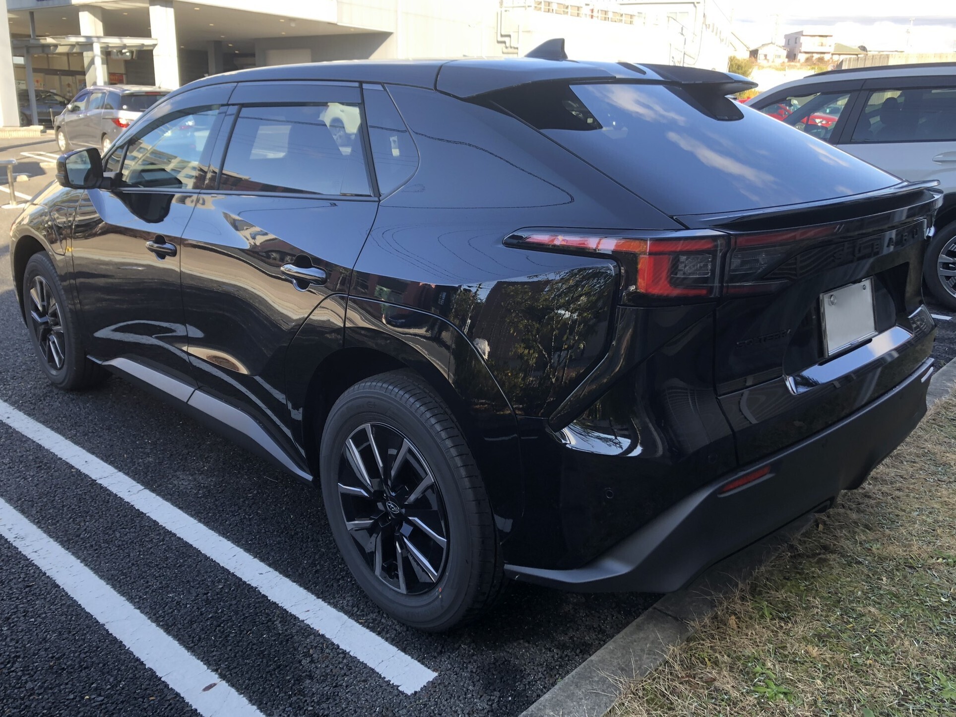 後ろは、都会的で躍動感あるソルテラ・bZ4Xと比較すると、伸びやかかつワイルドに見えます。