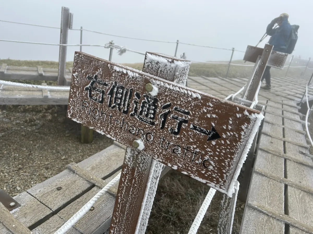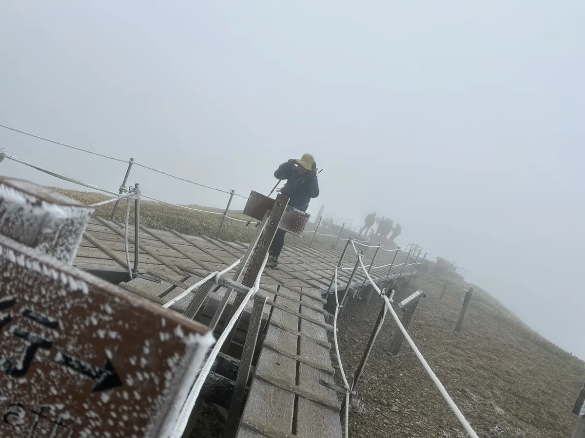 山頂近くまで登ってくると、山が霧氷で真っ白に❄️