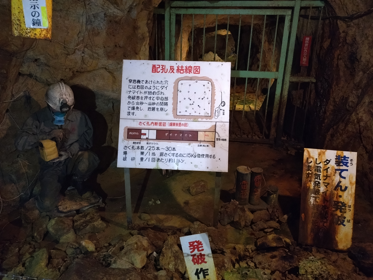 内部は綺麗に整備されています。江戸時代から近代にかけての掘削技術の進歩が当時の機械を用いてわかりやすく展示されていました。洞窟探検のようでかなり面白かったです。