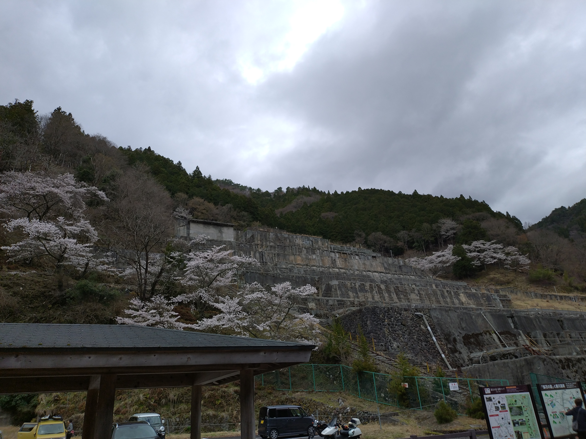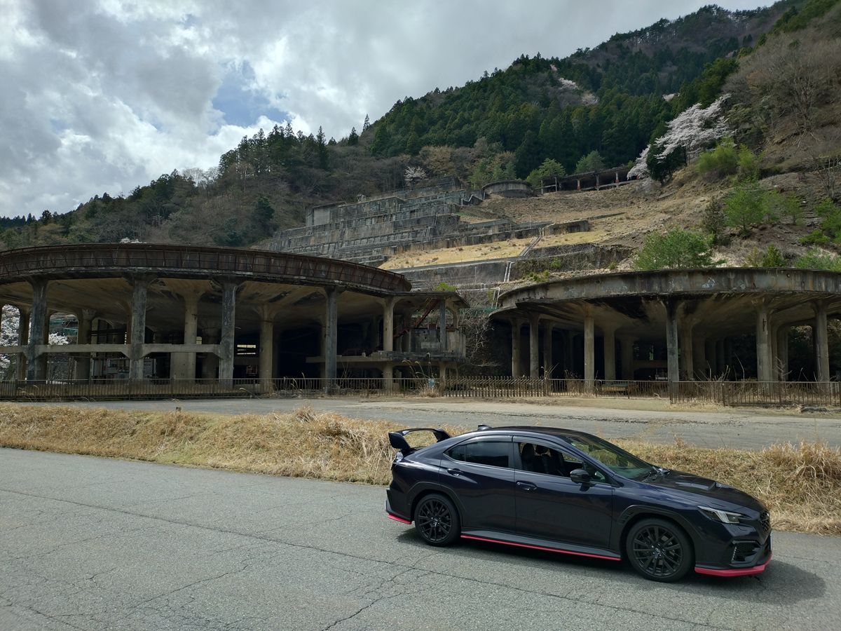 円形の遺構は「シックナー」と呼ばれる汚泥廃水処理施設。桜咲くのどかな山奥に突如として現れる無機質なコンクリートの遺跡、違和感と妙な美しさが非常に印象に残りました。