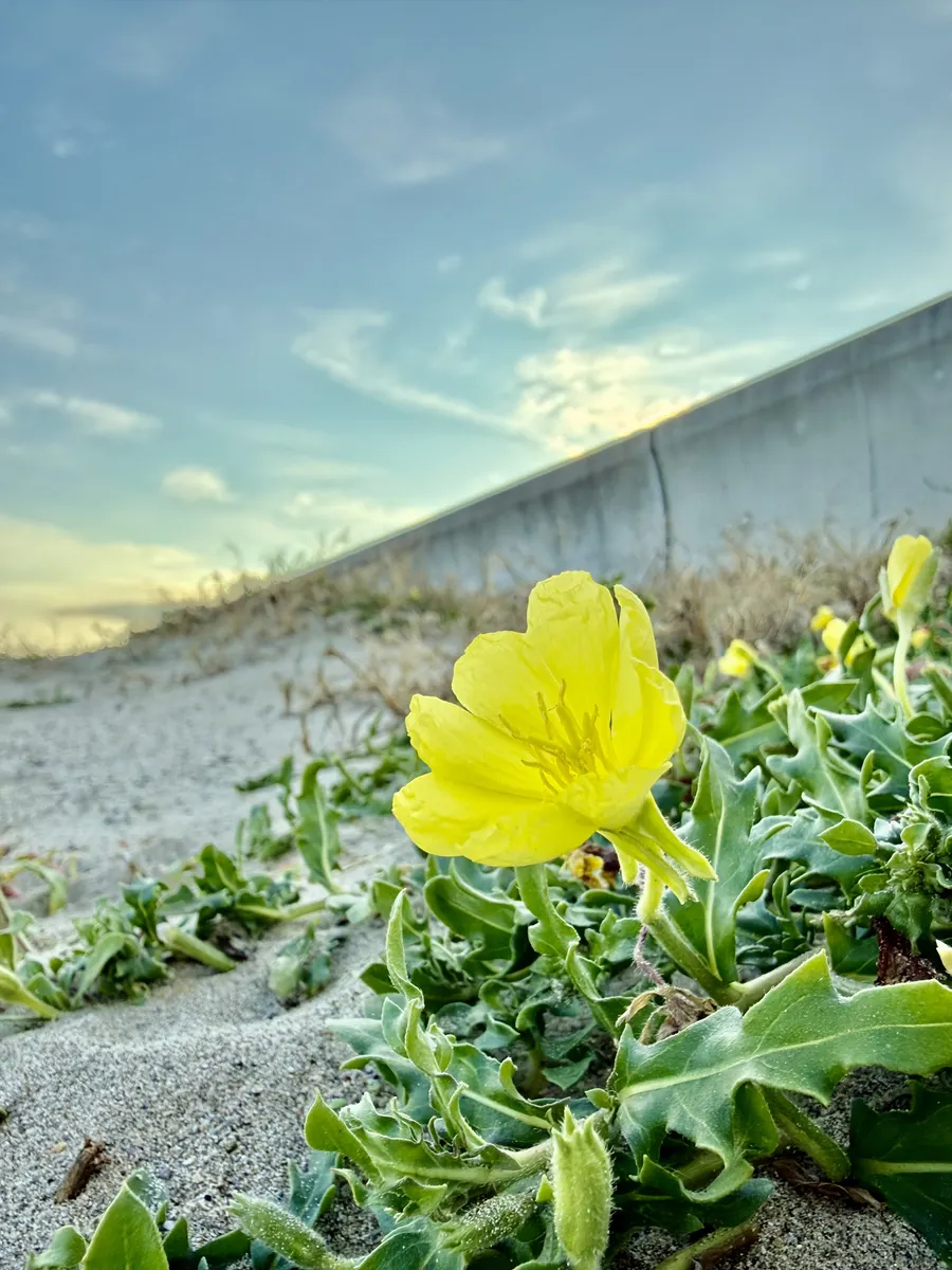 こんな砂地でも逞しく咲いて群生していたコマツヨイグサ