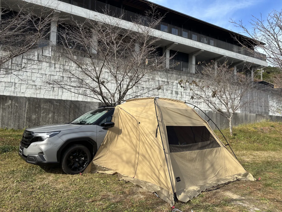 カーサイドタープと車中泊でまさにフォレくんが基地になって、ギアもSUBARU尽くしで羨ましいです😄