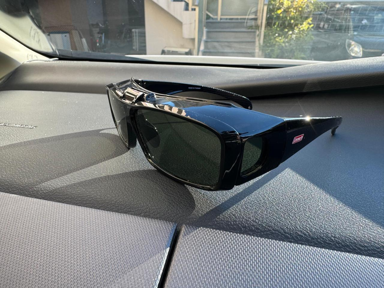 私はメガネを掛けていることもあって普段はサンシェードで直射日光を防ぐことが多いのですが、やはりサングラスがあった方が助かる場面もあるので、アウトドア用品ではメジャーなColemanの跳ね上げ式偏光オーバーグラスを使っています。