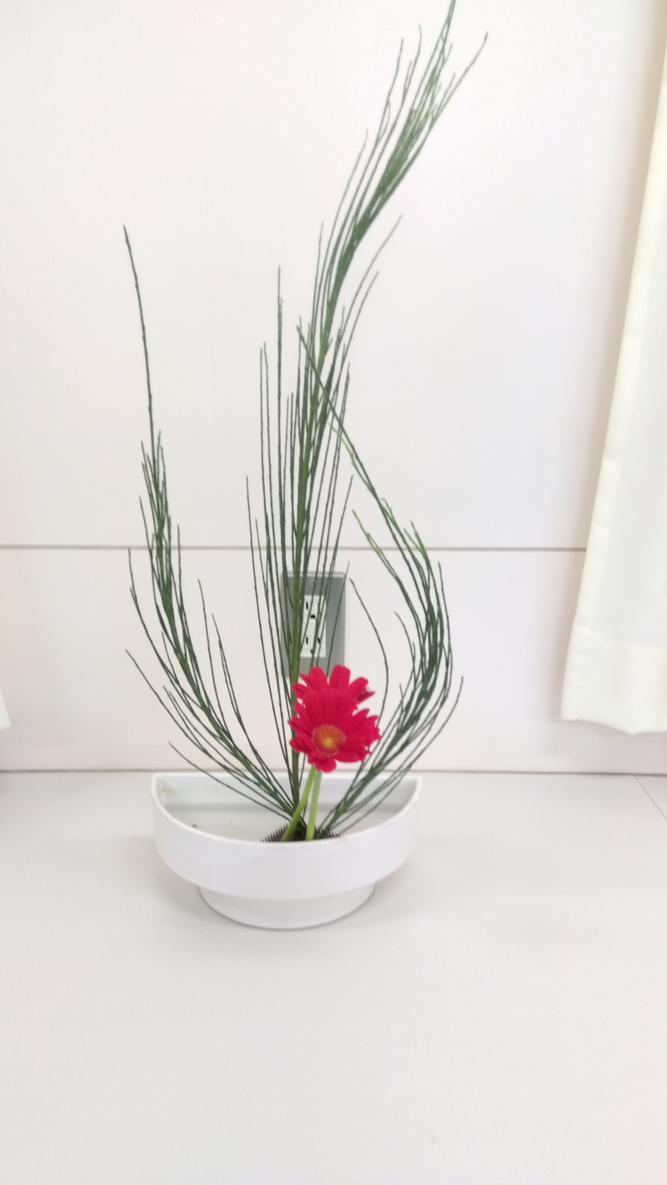 フラワーアレンジメントはオアシスを隠さないといけないので、足下や全体的にカバーリングしないといけませんが、生け花は足下はお行儀よく揃えて、スッキリと生けるので剣山が見えてもいいと思いますよ✨