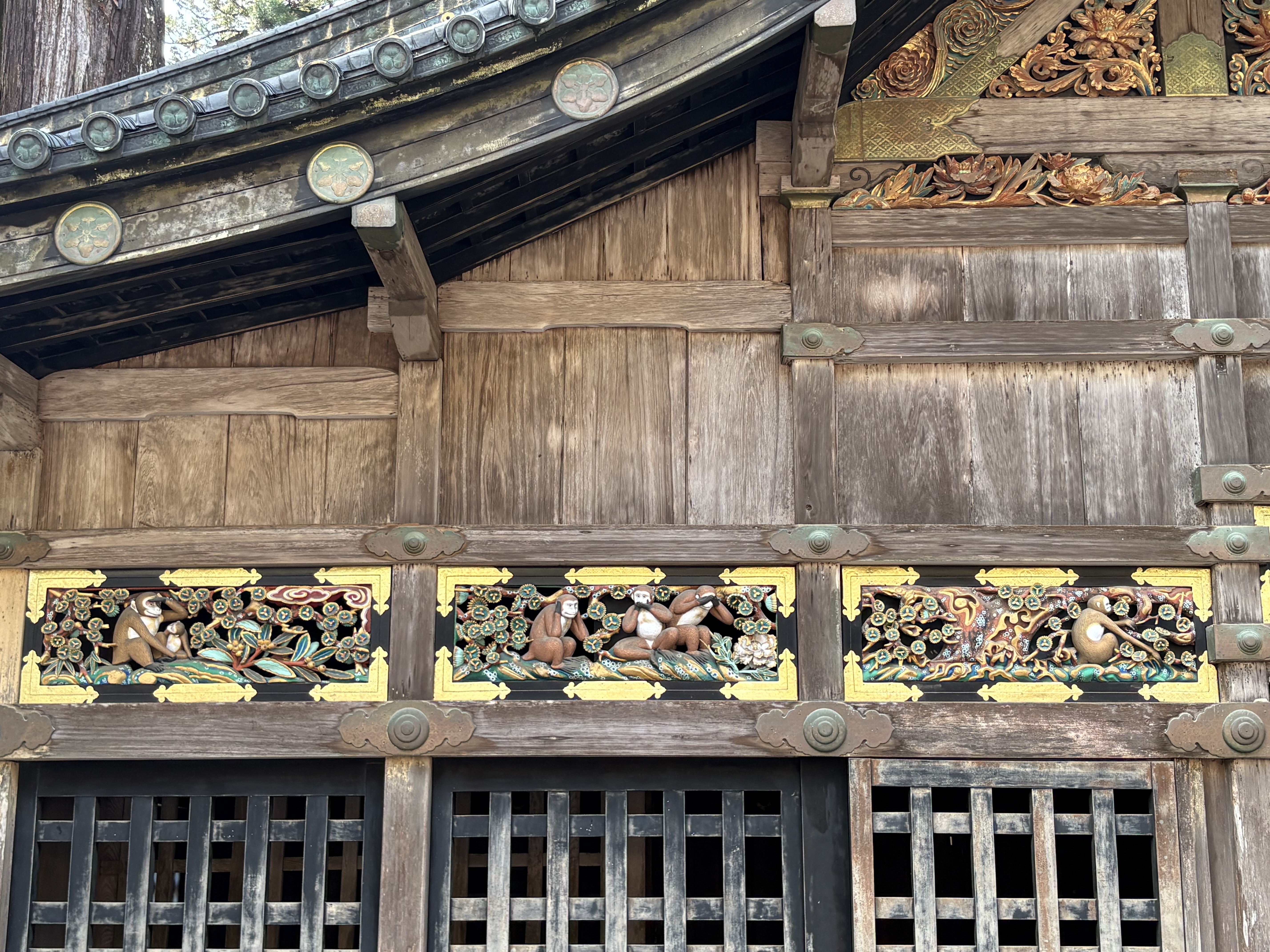 で、宝物殿の向かい側の建物に、あの有名な「見ざる、言わざる、聞かざる」の三猿の彫刻がありました🐒。