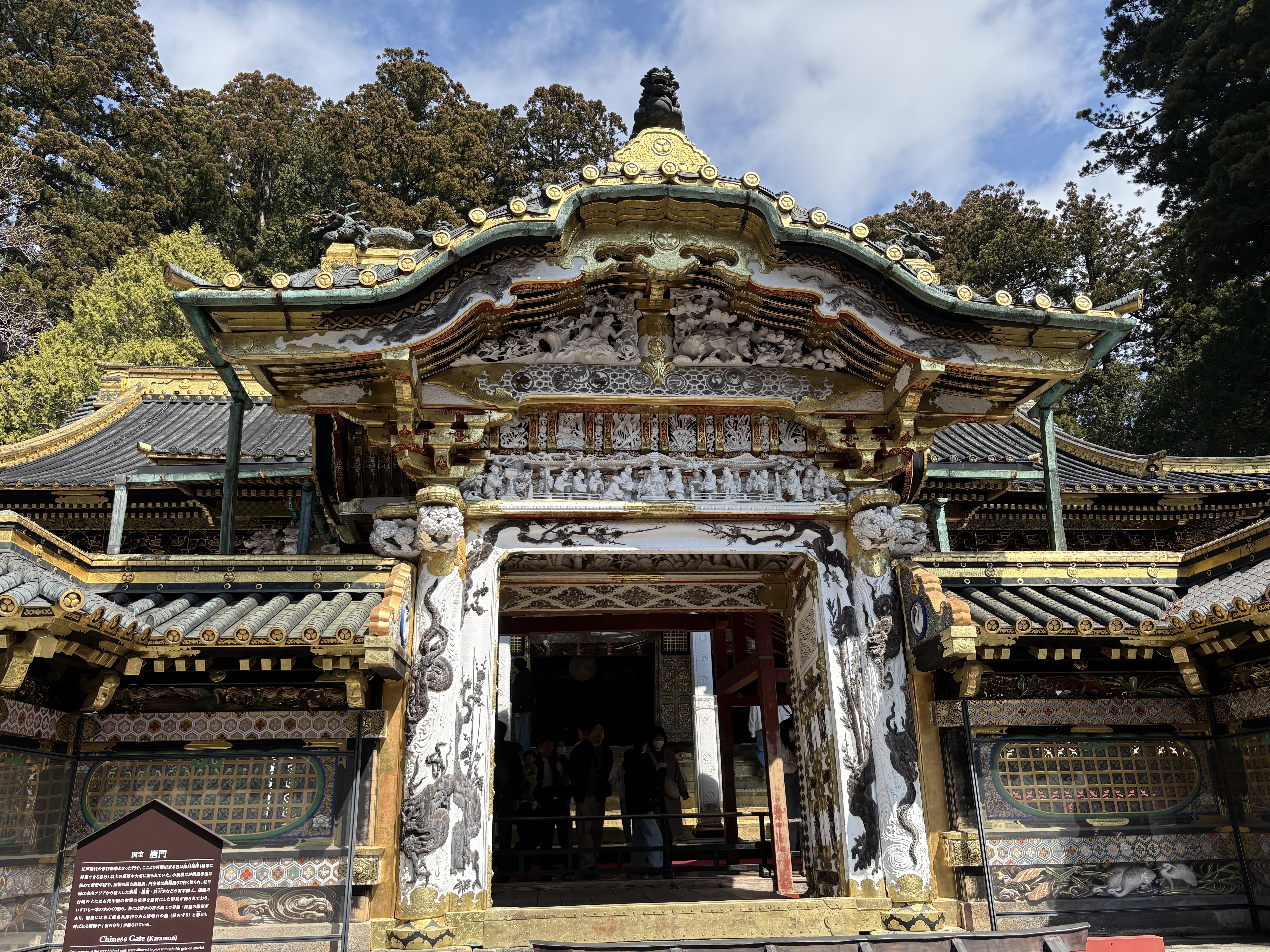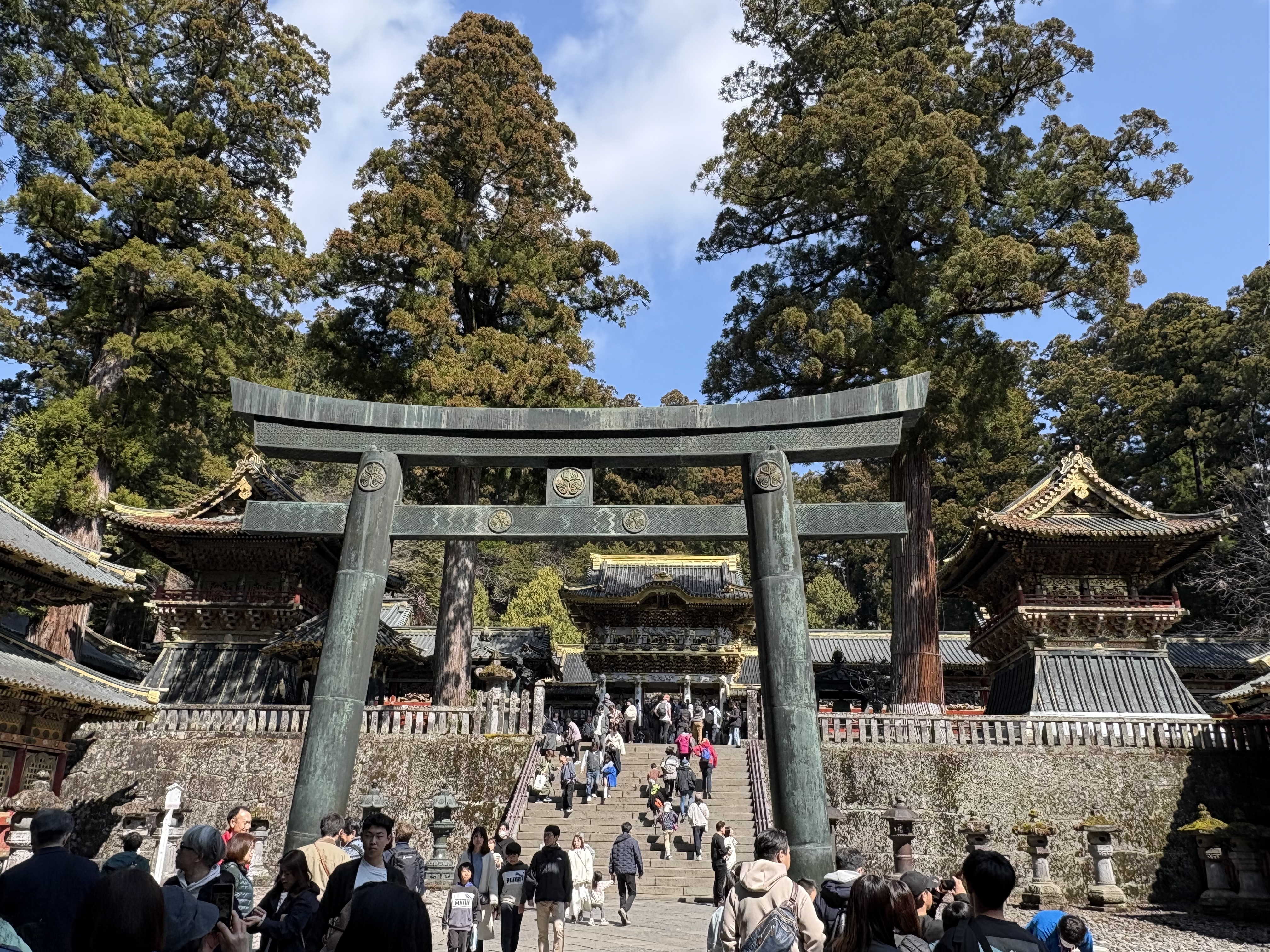 こちらが日光東照宮の本殿で、以前来た時は工事中でしたので、大分綺麗になっております。「日光に行かずして、結構と言う勿れ」と、現代で言う所のキャッチコピー宛らに、彫刻や建物の立派さに圧倒されました😊。