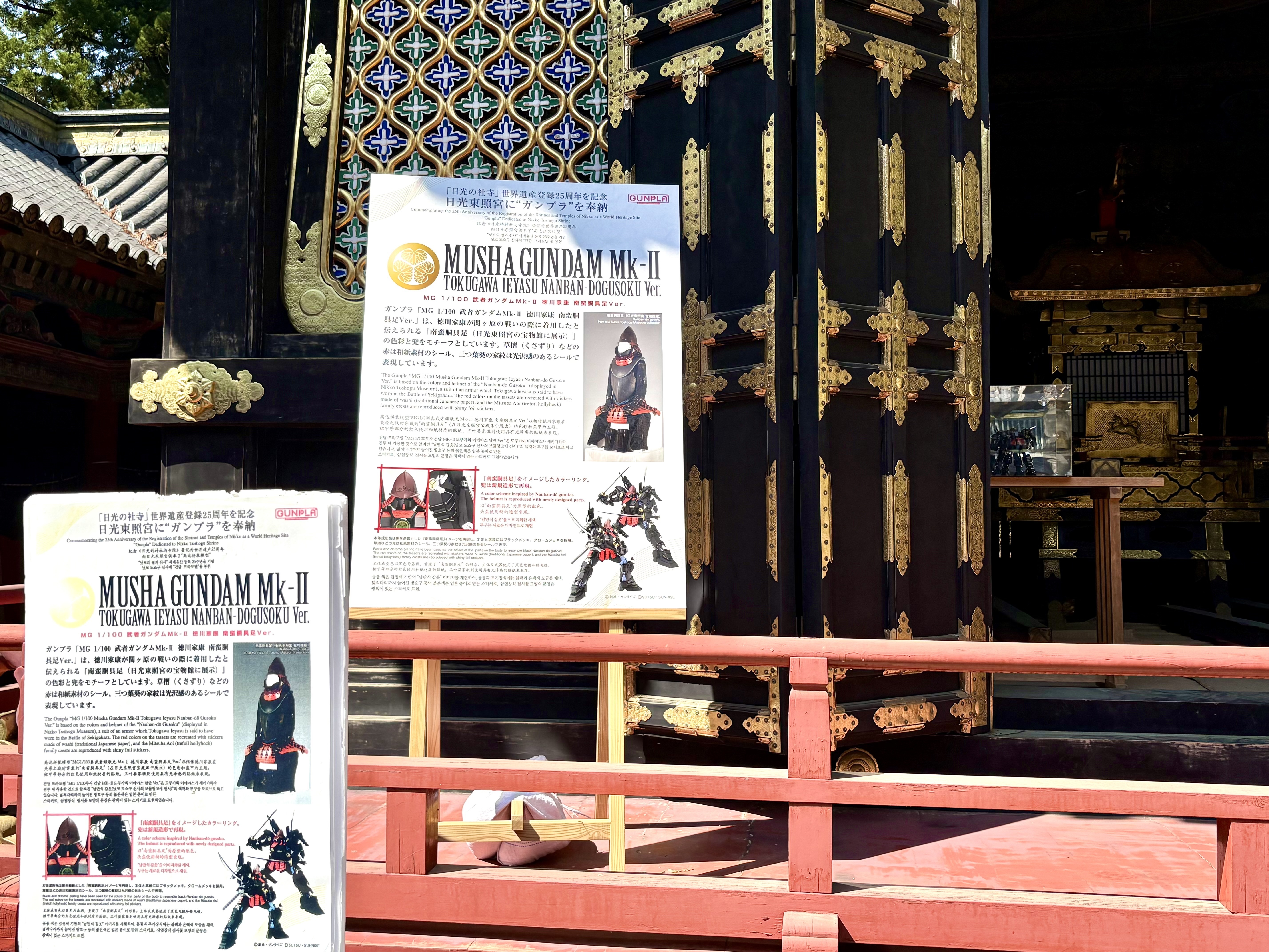 本宮の左横の建物に、何やら看板が。実は、東照宮にガンプラが奉納された様で、その同型のガンプラが販売されてました😳。MGで価格は8000円位。お父さんが2つ抱えてるのを見たので、お子さん用と自分用かな🤔?15時までの販売ですので、欲しい方はお早めに😅。