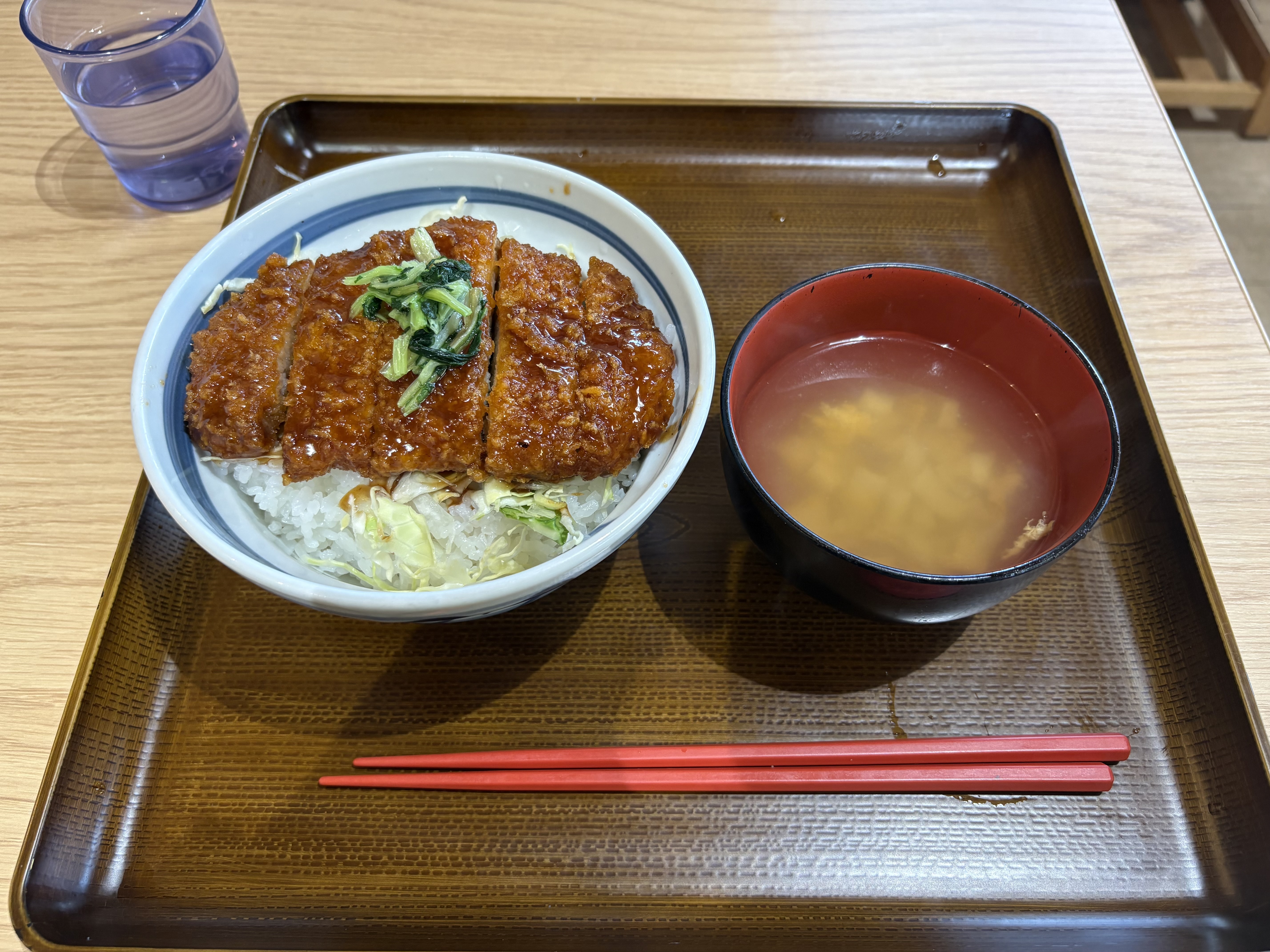迷いに迷い、私はカツ丼にしました。栃木は干瓢が有名で、実は味噌汁の具になってました😅。