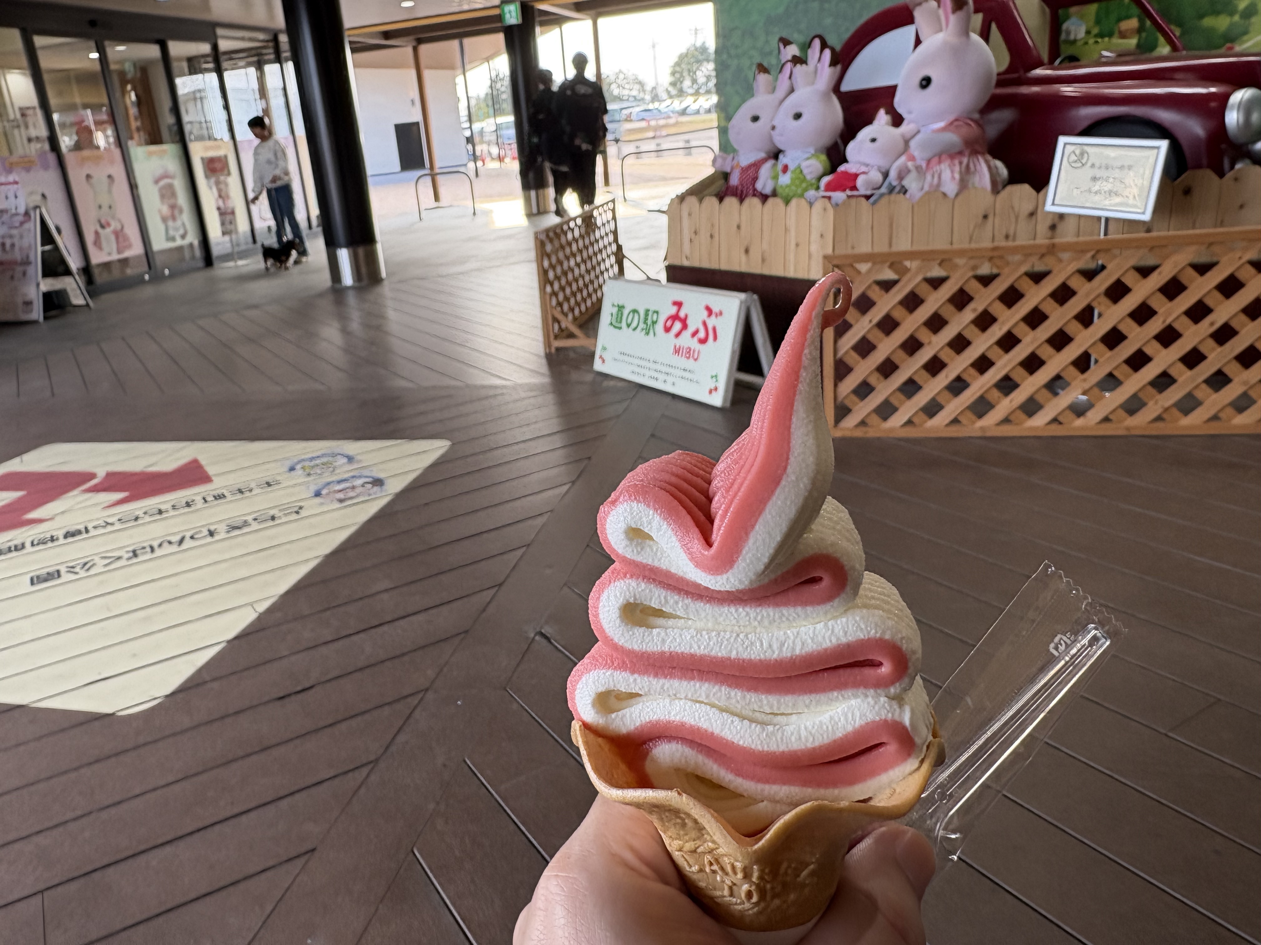 で、先程のソフトクリームの写真の奥に写っていたのは、こちらのシルバニアファミリーの仲間たち。壬生にはバンダイ等の玩具メーカーの工場があり、おもちゃの町だったのですね。博物館もあるみたいです😊。