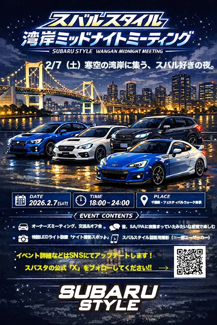 明日2/7(土)にスバルスタイルの湾岸ミッドナイトミーティングに参加する予定でした。