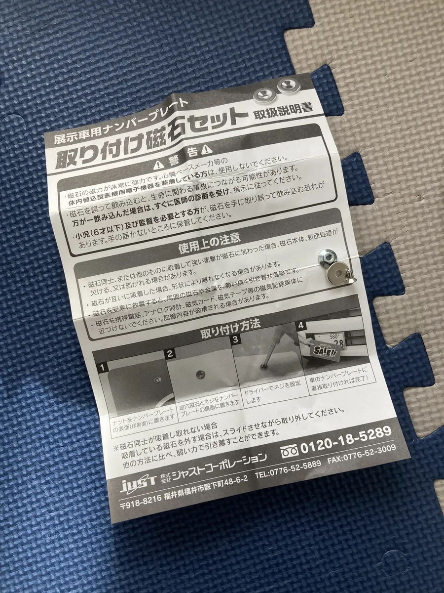 必要なものはプラスドライバーだけです!あとは、ナンバーのボルト部分とナンバー隠しのマグネットを重ねるだけ!これは便利ですね😊