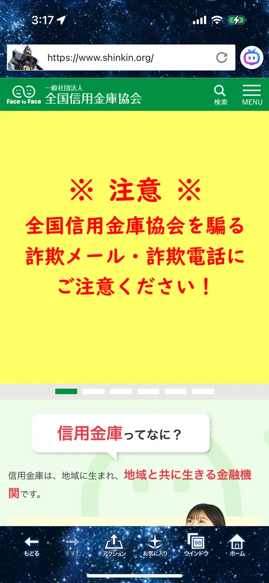 全国信用金庫を語る詐欺が多い様です。