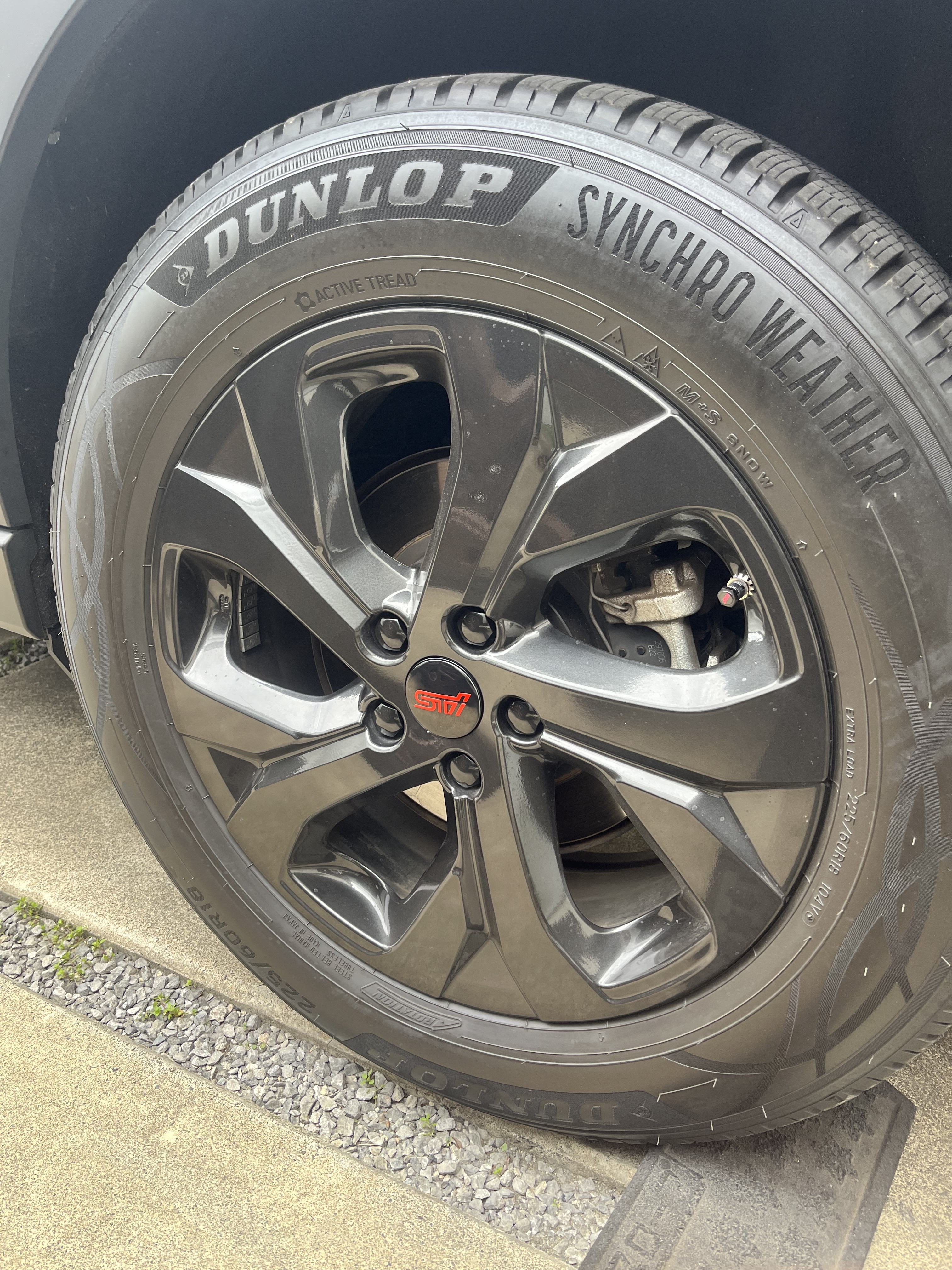 センターキャップはチェリーレッドのSTIロゴが映えます。。最初はキャップ自体変えようと思いましたがコスパ的にNG、楽天市場漁ってる時に偶然このステッカーとであったので即買いでした。キャップ部分少し盛りあがりができますが、近くで見ないとわからないレベルです。