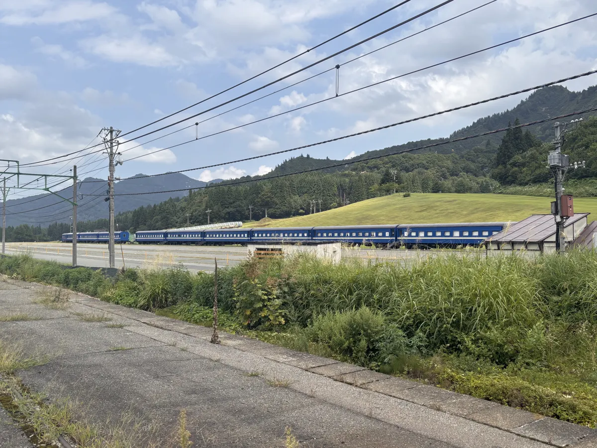 越後中里駅でも青い車両に遭遇しました。