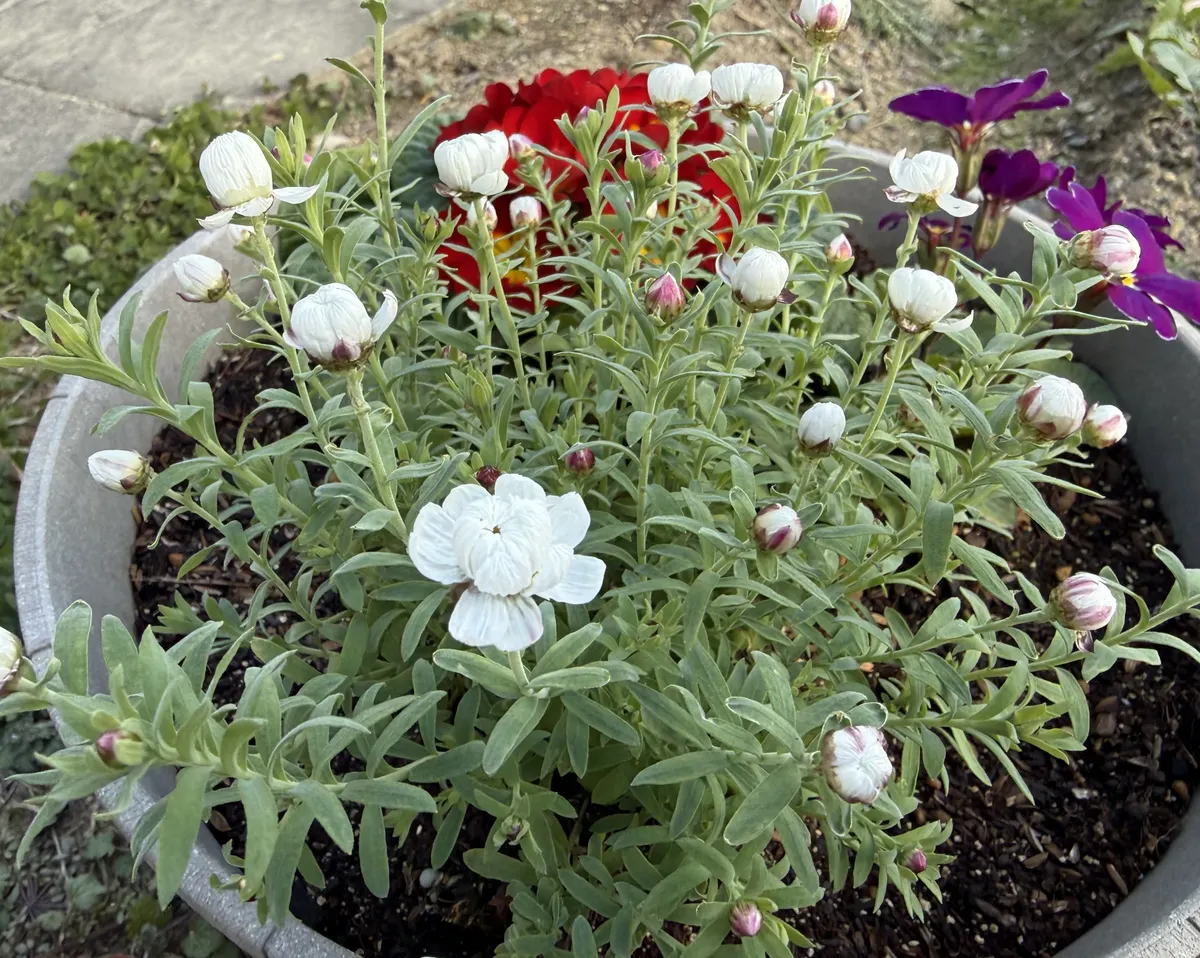 家の玄関先のプランターでは花かんざしが漸く開花し始めました♪