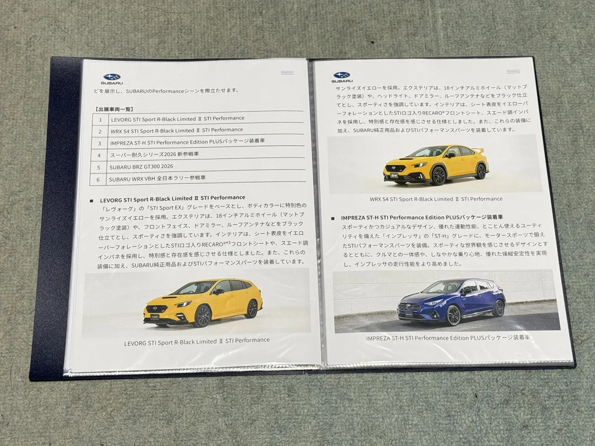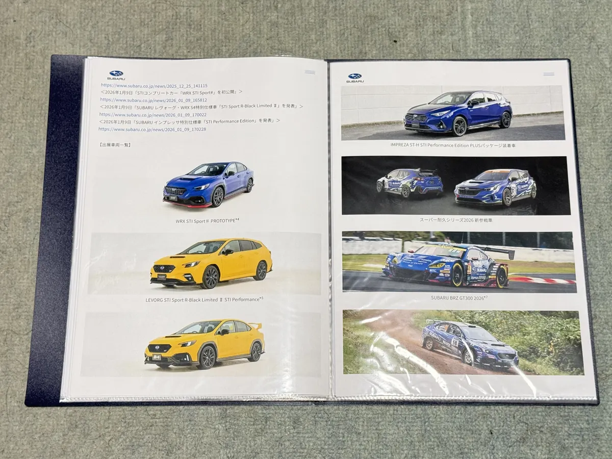 東京オートサロン2026 SUBARUのパンフレットがない様なのでSUBARUのニュースプレスの印刷やSTIや SUBARUからの写真を頂き制作してみました。