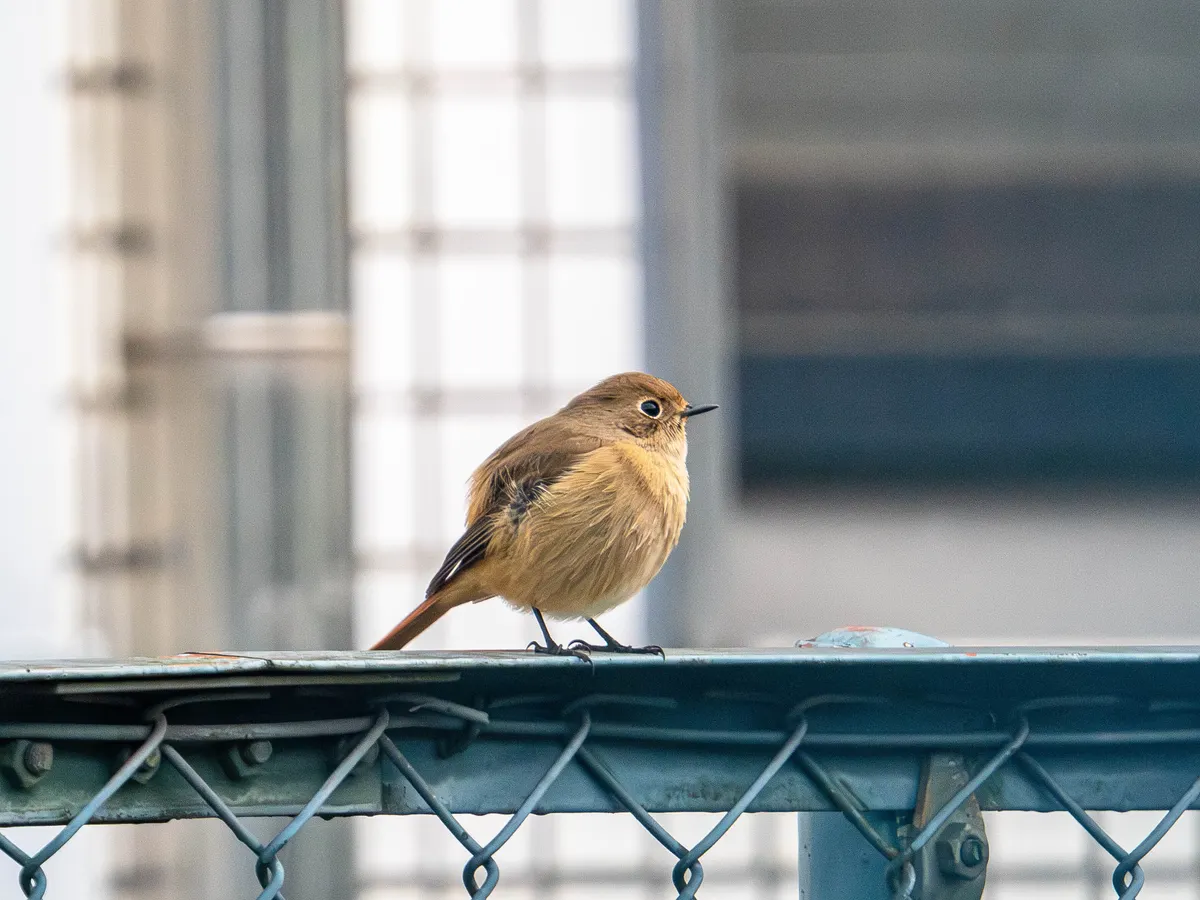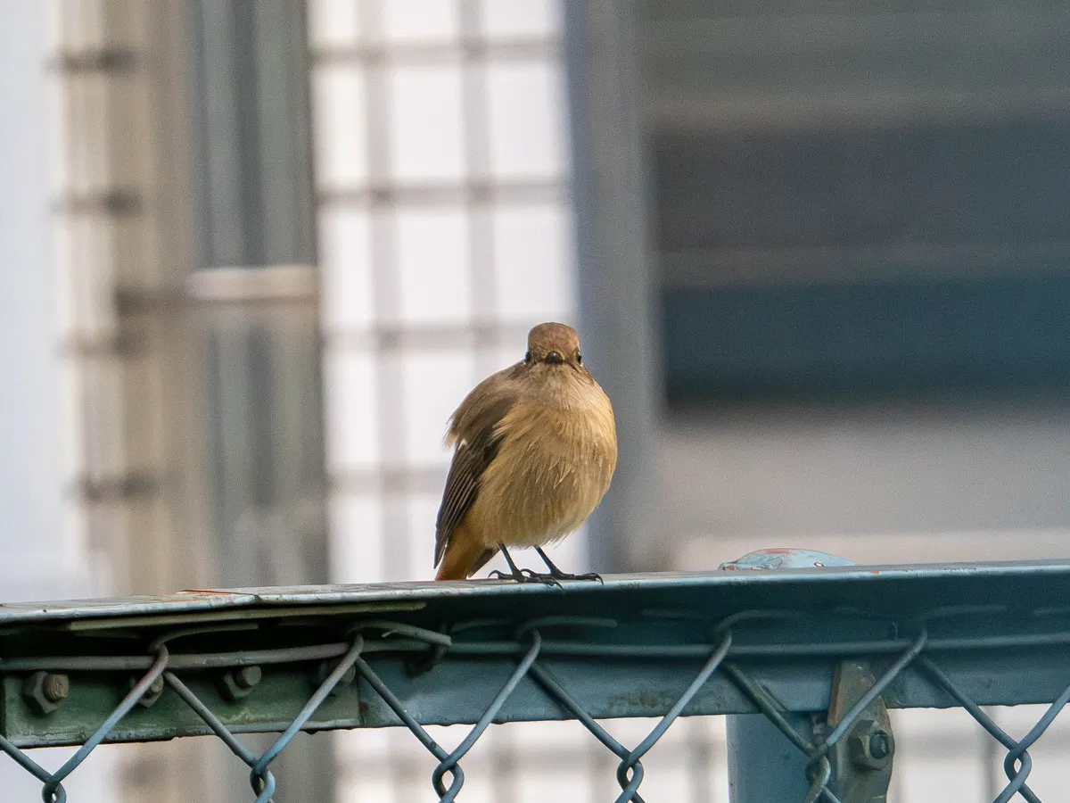 ヒッヒッと鳴く声はしていたので、慎重に歩いていたらフェンスの中にあるフェンス上部に停まってた。