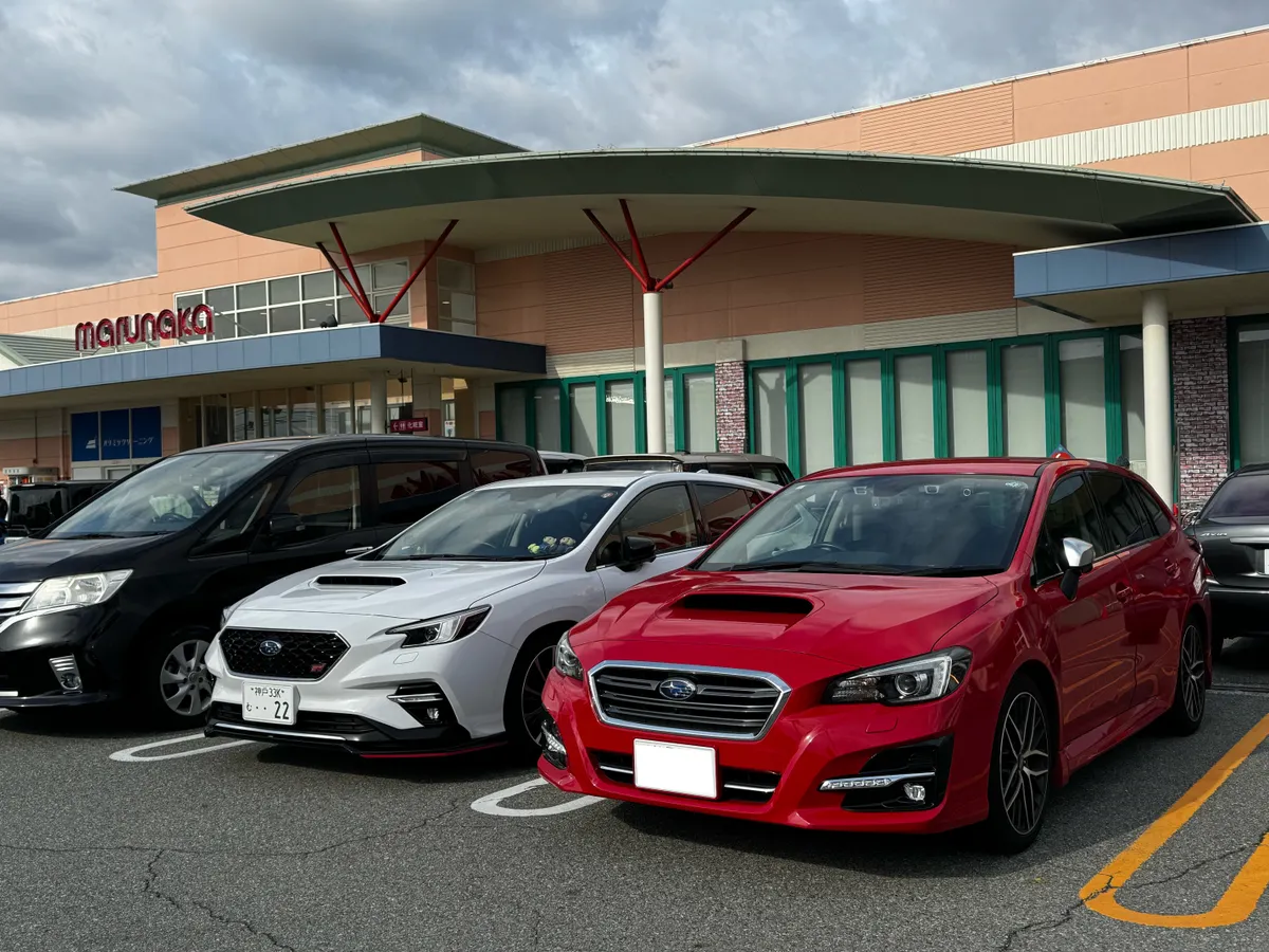 新年早々、赤のレヴォーグとの「スバルの法則」!しかも紅白とは本当に縁起が良いですね🚗