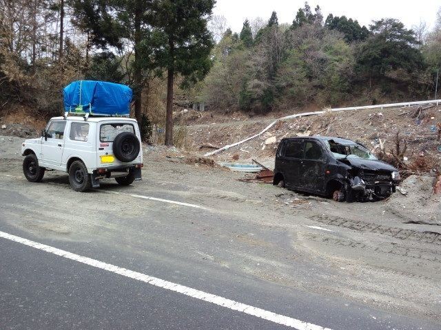 震災当時、会員として所属する地元商工会繋がりで、津波で公用車を全て流されて業務に多大な支障が出ている南三陸の商工会さんの話を聞き、今でも乗っているスズキジムニーに地元商工会の協力でかき集めた支援物資を積めるだけ積み込んで、被災地を縦断し南三陸の商工会さんに1年間ジムニーを業務で使って頂くために託して新幹線で帰ってきたのが昨日のことのようです。