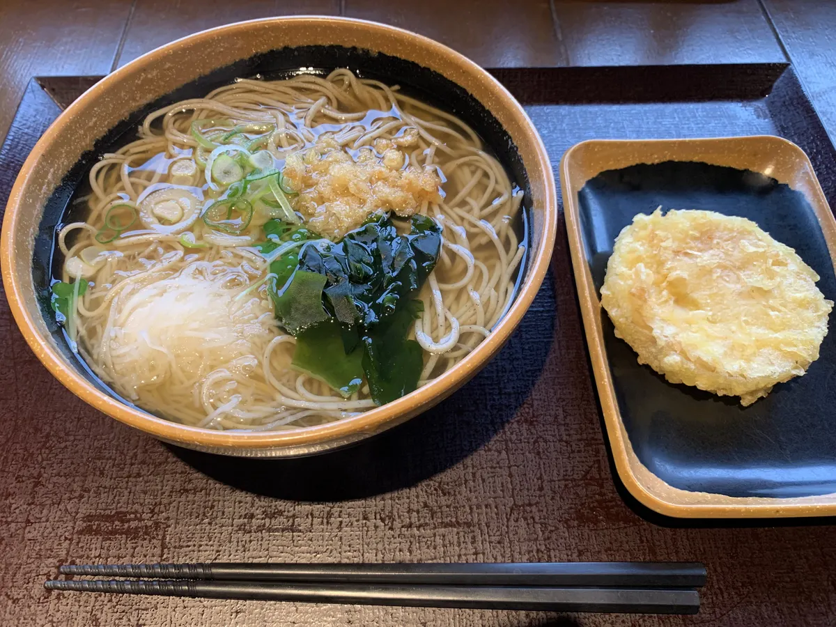 いつもよりは暖かくなった週末とはいえ、蝋梅園を見ているうちに体が冷えてきたので下山メシへ🚙温かい蕎麦の上に千切りの大根がのっている大根そば🍜と、たけのこの天ぷらを食べました(売りは冷たい大根そばのようです)