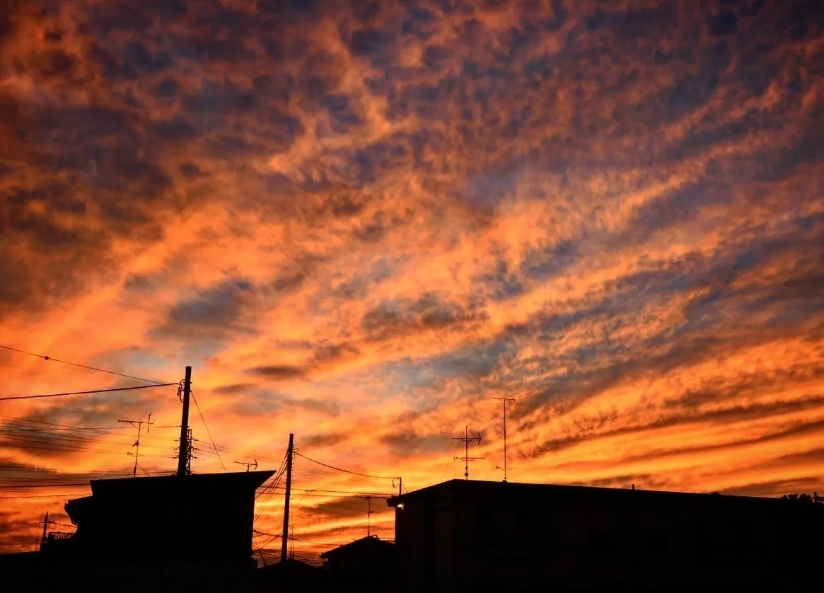 ふと空を見上げると、秋のきれいな夕日が広がっていました。