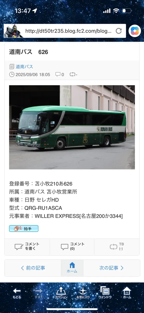バスのナンバーを検索したら、バスの経歴という事で名古屋のバス会社で使われていた車両の中古車とわかり驚きました‼️