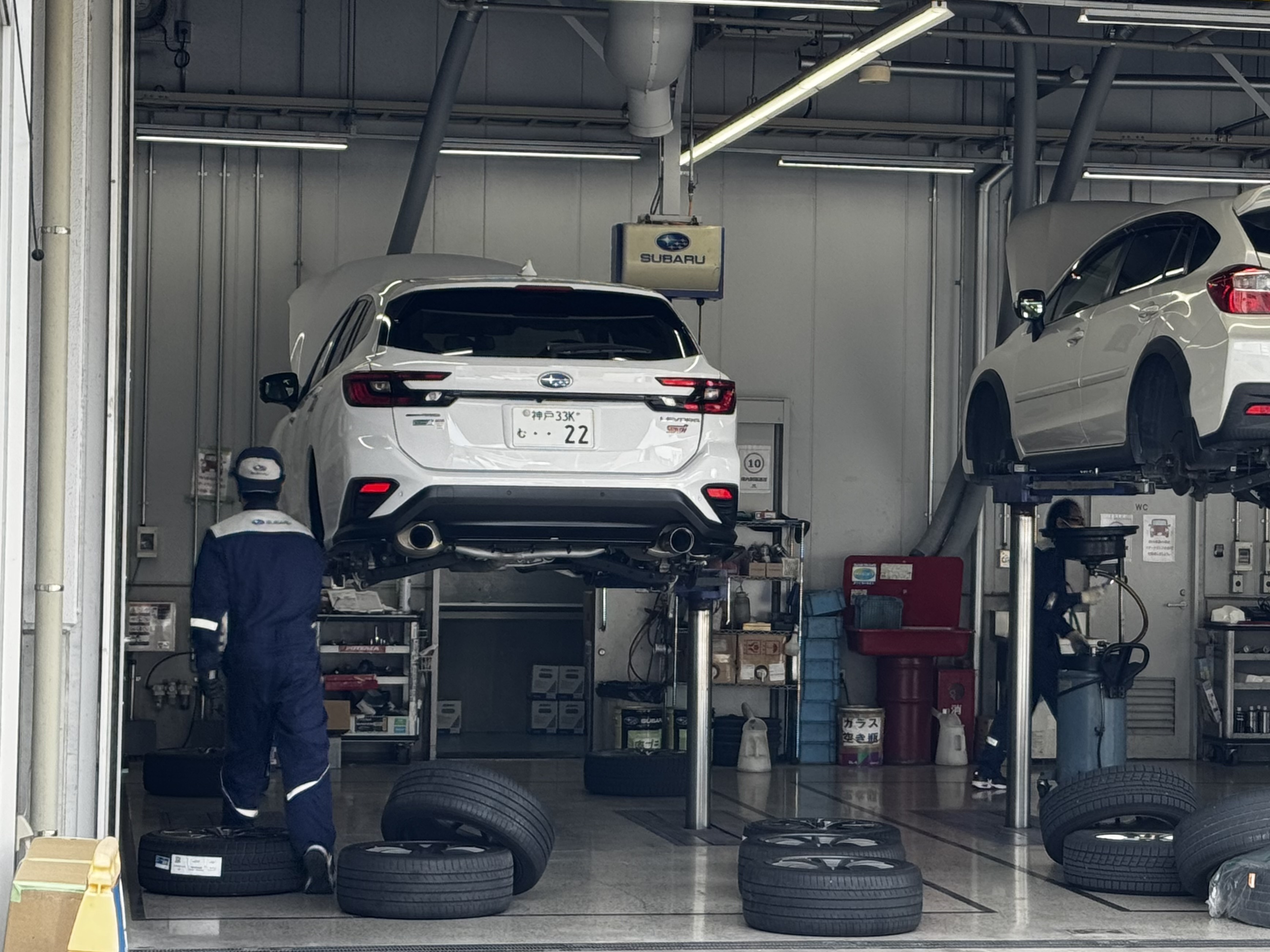 リフトで吊り上げられているレヴォーグの姿ももはや定番ですね!