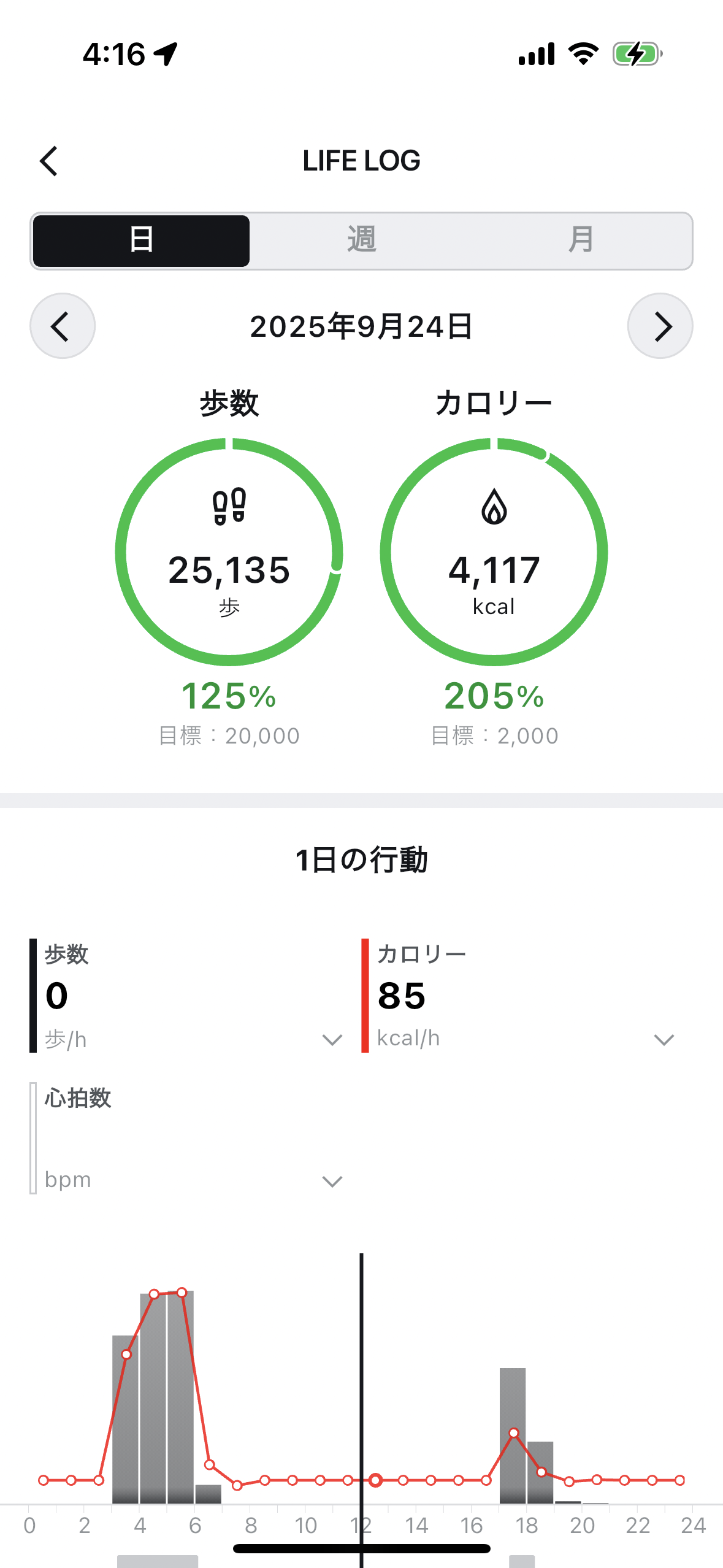 昨日1日のウォーキングデーターてますが、初めて4000カロリーオーバーの消費を達成しました。