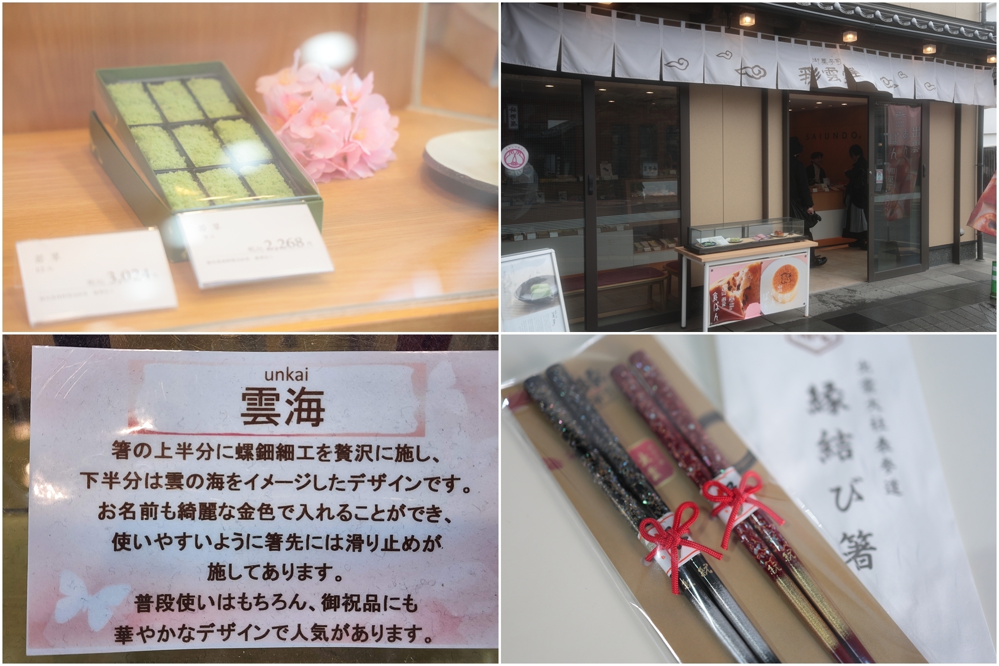 15. 松江藩主・不昧公が愛した彩雲堂の「若草」と、門前の老舗ひらの屋さんの「縁結び箸」を購入しました。