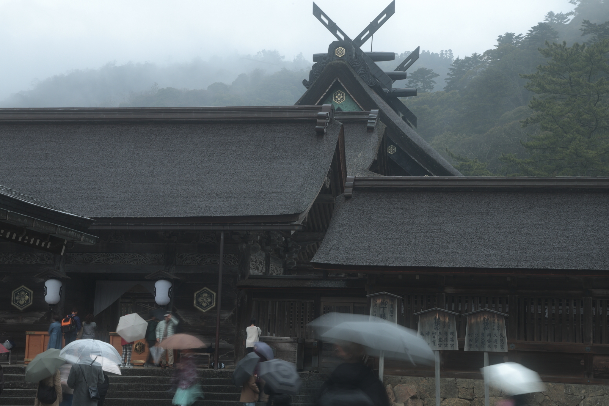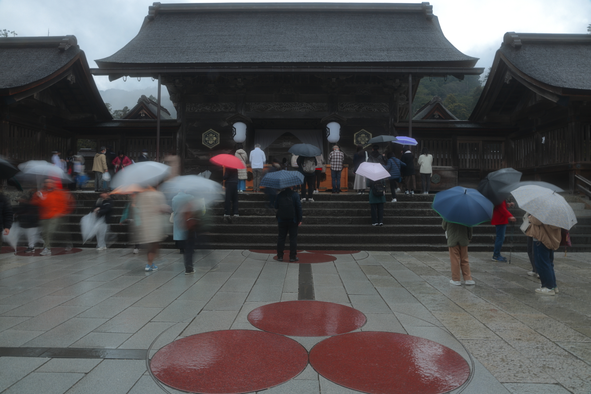 雨の出雲大社でのお参りもミステリアスで、何処からか神様がお出でにになりそうですね⛩️