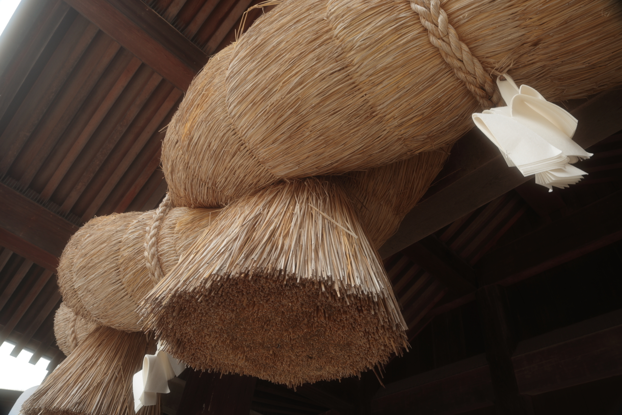 8. 神楽殿に掛けられた注連縄は、長さ約13.6メートル、重さ5.2トン。間近で見るとその迫力に圧倒されます。