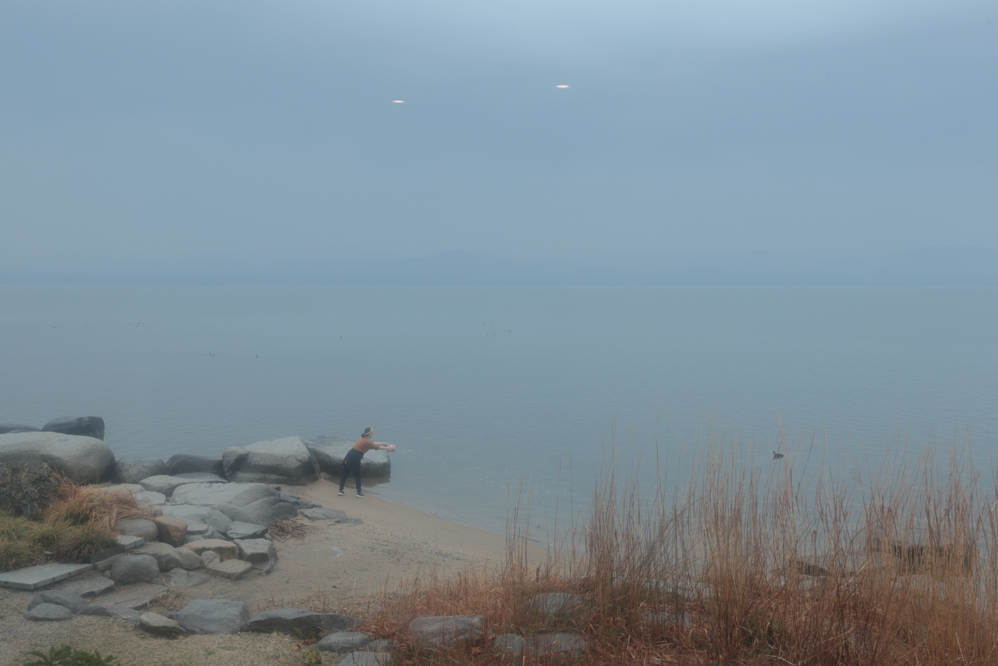 3. お店の方が「パンくずがあるから、撒いてみましょうか」と声をかけてくださいました。あいにく冬の水鳥たちは旅立った後のようで寄ってきてくれませんでしたが、真冬なら空中でキャッチするほど群がってくるそうです。