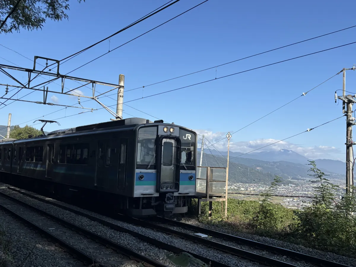 姥捨駅からの風景、特急乗っちゃうとスイッチバック不要で通過するので、窓越しでしか写真撮れないんですよね😅