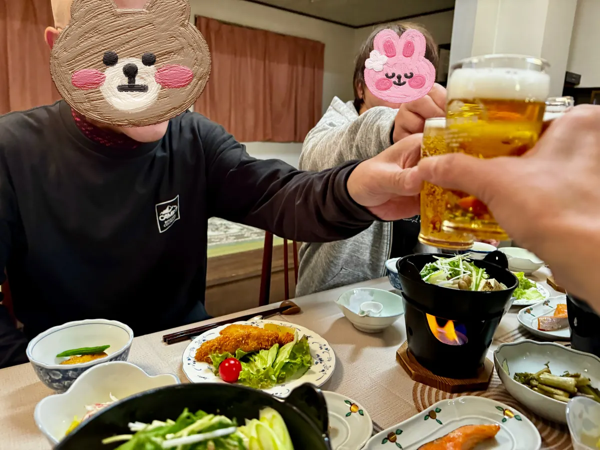 スキーを堪能した後は皆で楽しく乾杯🍻
