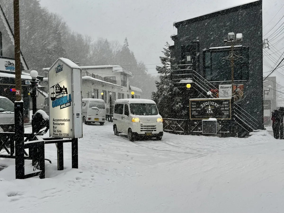 ゲレンデ駐車場まではハイ◯ースで移動しましたが、2日目はちょっと急坂のある駐車場へ…