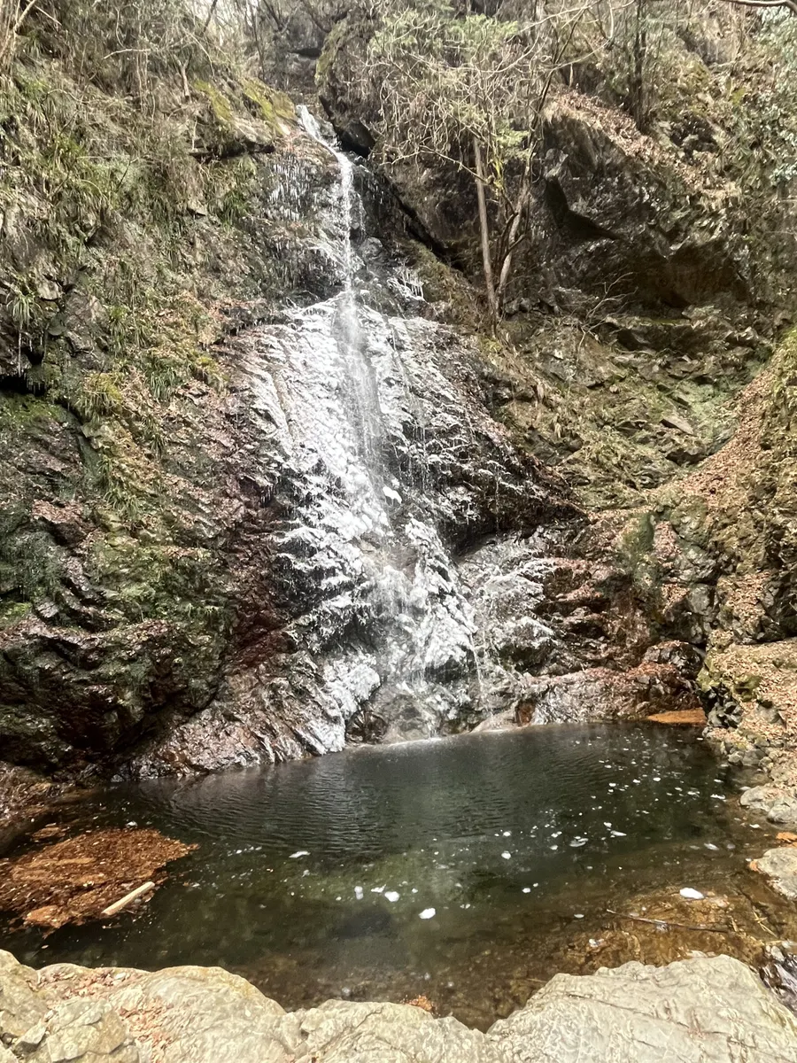 滝は一部凍ってまして、美しいです。デトックスになりました。