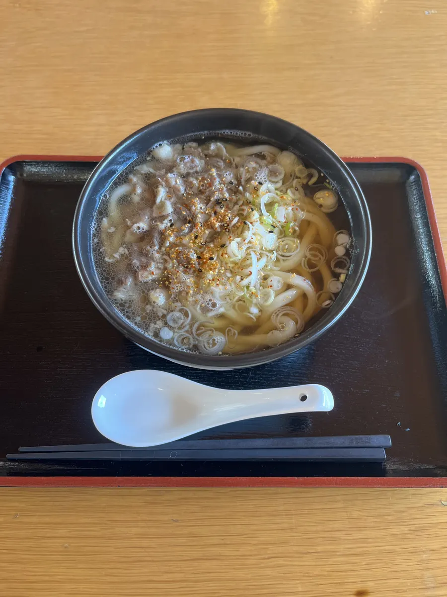 レストランで肉うどんいただきました。しみます、とにかく肉と椎茸の出汁が身体中にしみわたっていきます😆。とても美味しかった、ごちそうさまでした😋。