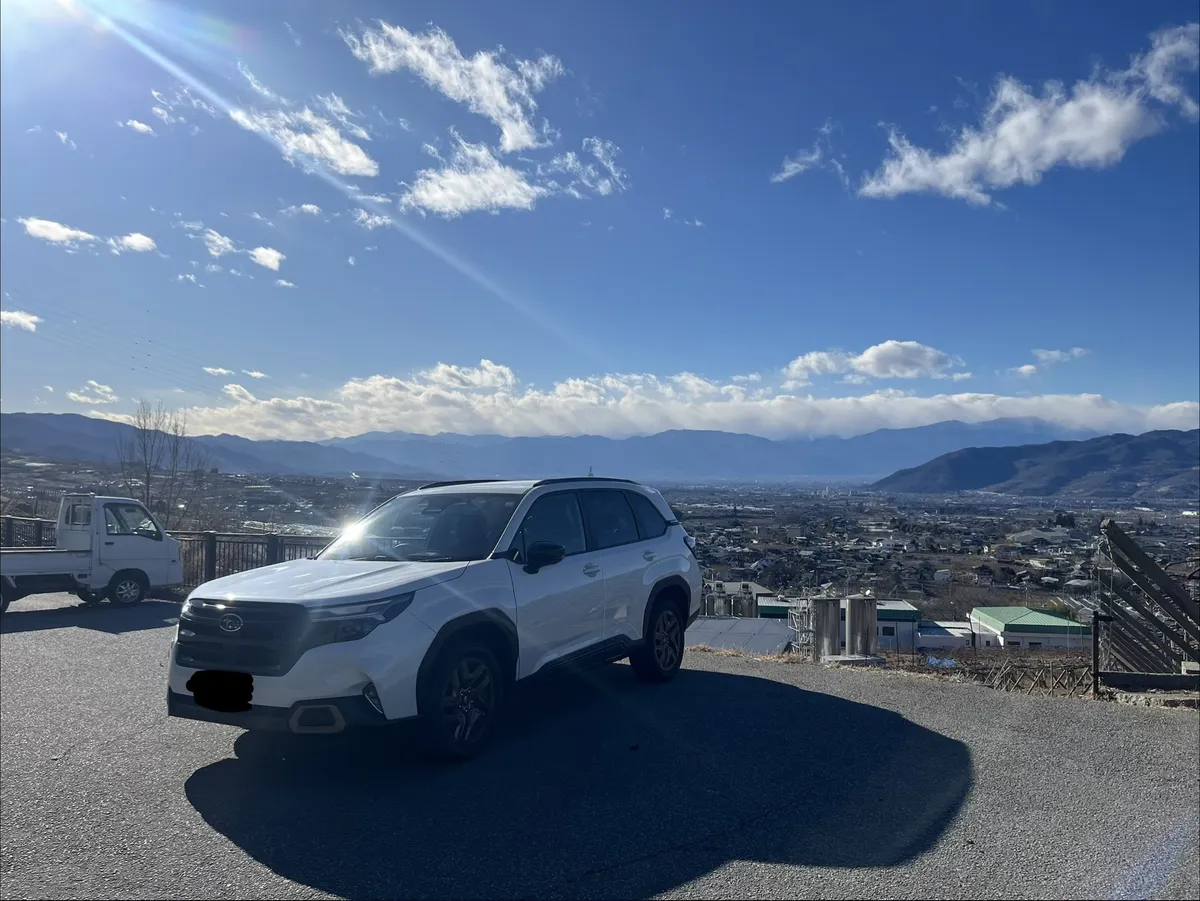 澄んだ空気、甲府盆地をバックに、旅の締めの写真をパシャリ。走りがいのある、ワインディングメインのスバロード旅でした😆😆