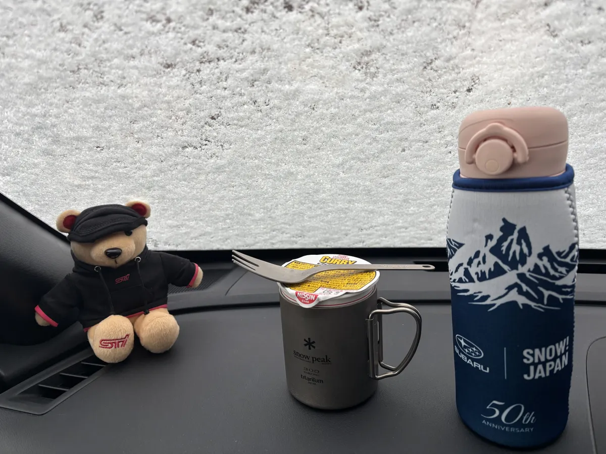 寒すぎて車内で遅めのお昼ご飯。