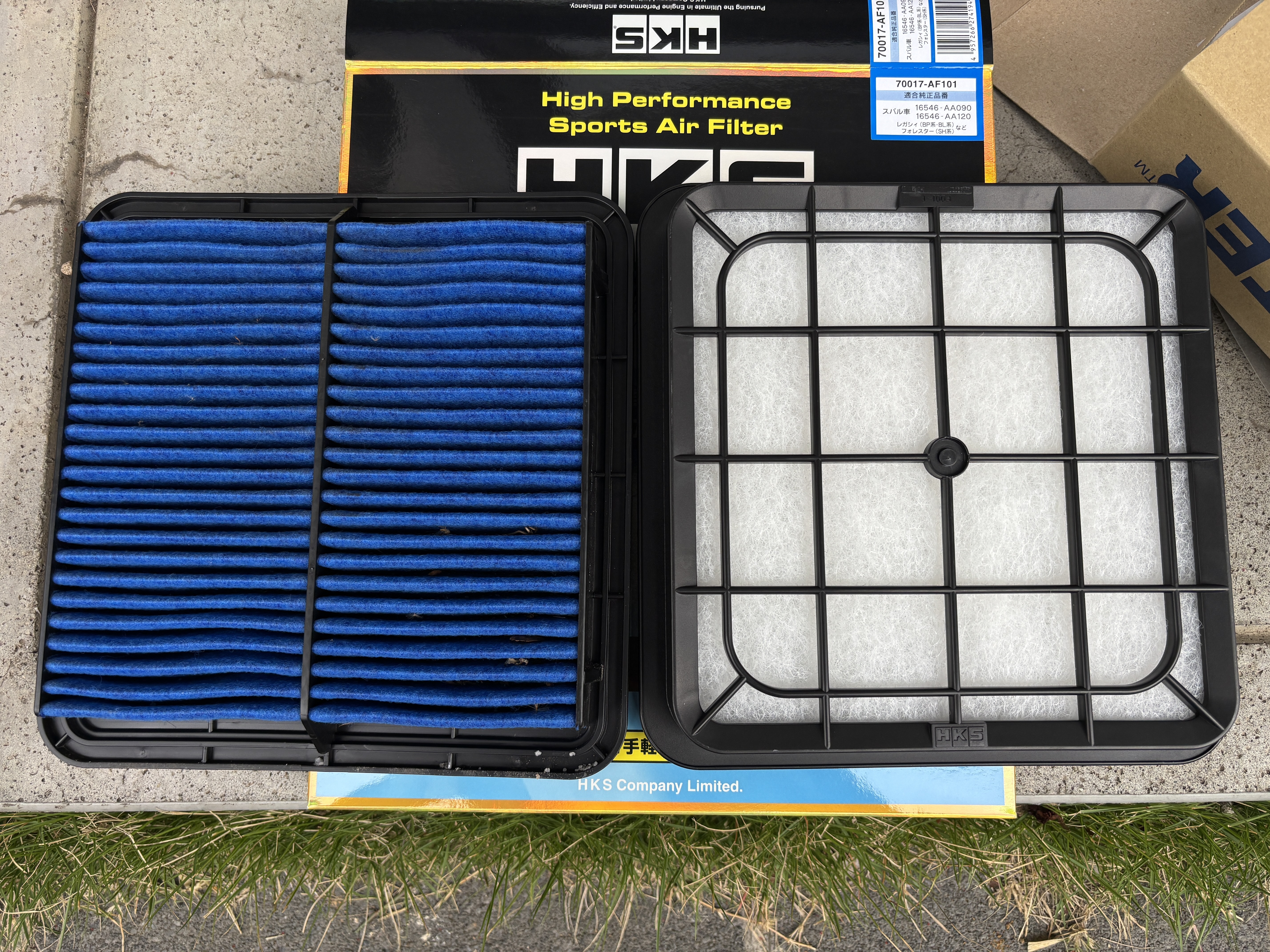 こちらは純正形状のブリッツ製からHKS製に交換。