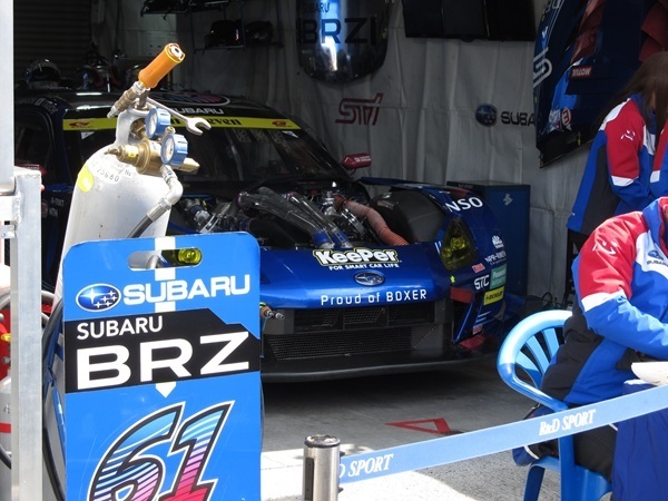 午前のセッション後、ピットウォーク時の 61号車のピット前は、スバルのファンで人だかりになっていました。