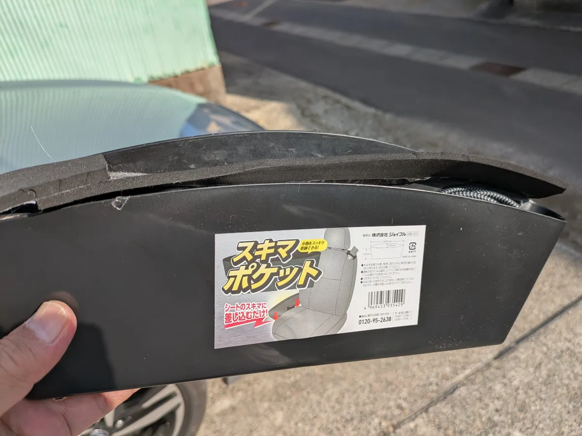 オートバックスで100円のすきまポケットという、座席とチェンジレバーとの間に物が落ちないようにするやつ買ってきまして、