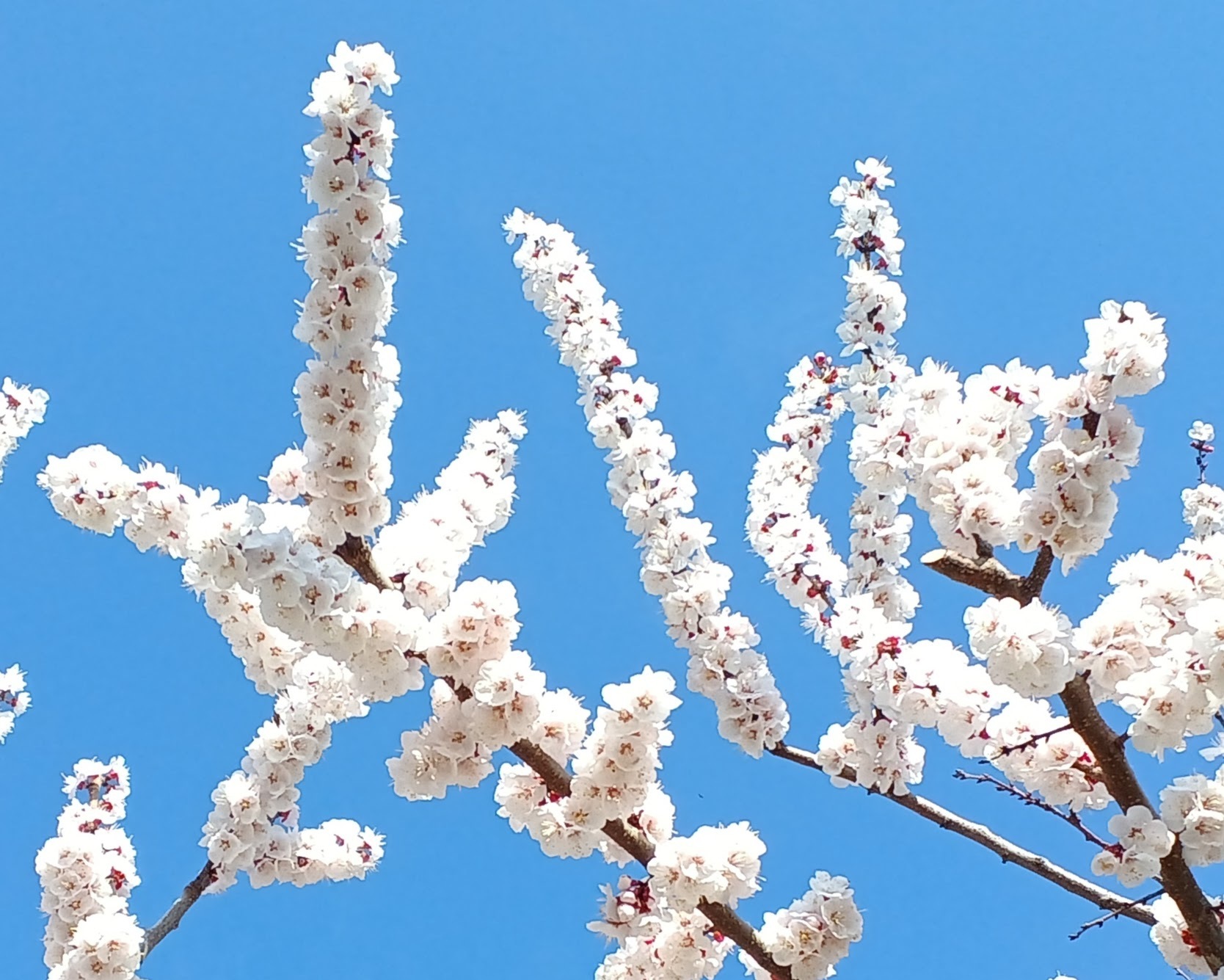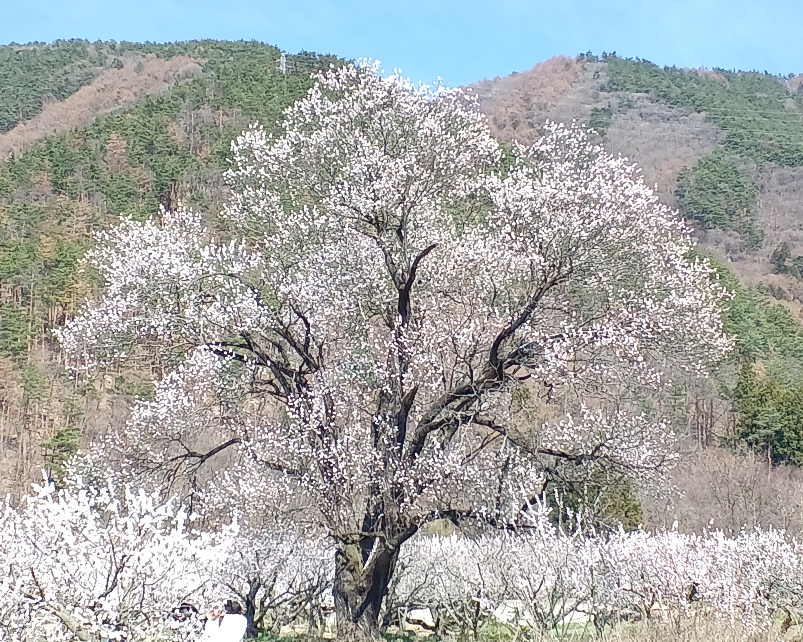 ひときわ目立つ樹齢約三百年のあんずの樹です。
